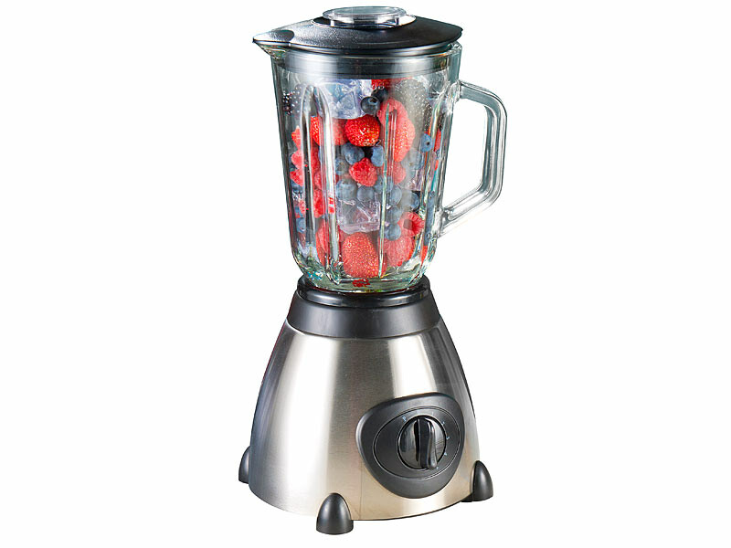 Avec ses lames en acier inoxydable, ce mixeur blender mixe finement et sans effort fruits, légumes et noix. Réglez la vitesse comme vous le souhaitez : choisissez parmi les différents niveaux de vitesse selon le but recherché. Vous pouvez ainsi hacher des fruits, mouliner des légumes ou mixer des sauces. Utilisez-le également pour les aliments durs. La fonction Pulse vous offre un contrôle précis : l'appareil ne mixe que lorsque vous maintenez le bouton appuyé. C'est idéal pour les appareils qui nécessitent une forte puissance pendant une durée réduite, comme les noix. Le tout avec un seul appareil. Préparation simple : mixez les préparations directement dans le verre mixeur. La graduation vous permet de doser les ingrédients que vous versez dans le verre mixeur. Et grâce aux 4 pieds avec revêtement en caoutchouc, l'appareil bénéficie d'une parfaite stabilité. Mixeur-blender avec boîtier en acier inoxydable, par Rosenstein & Söhne 6 lames en acier inoxydable 5 niveaux de vitesse Fonction Pulse pour un contrôle parfait du processus de mixage à haute vitesse Verre mixeur en verre avec affichage en ml et oz Capacité : 1,5 L Couvercle avec ouverture pour pouvoir remplir à tout moment sans ouvrir Système de verrouillage sûr : le mixeur ne s'allume que quand il est mis en place correctement sur le socle Haute performance : 600 W Nettoyage facile : lames amovibles Boîtier robuste en acier inoxydable Pieds avec revêtement en caoutchouc antidérapant pour une parfaite stabilité Alimentation : 230 V (longueur du câble : 110 cm) Dimensions (Ø x H) : 20,5 x 36 cm, poids : 3,1 kg