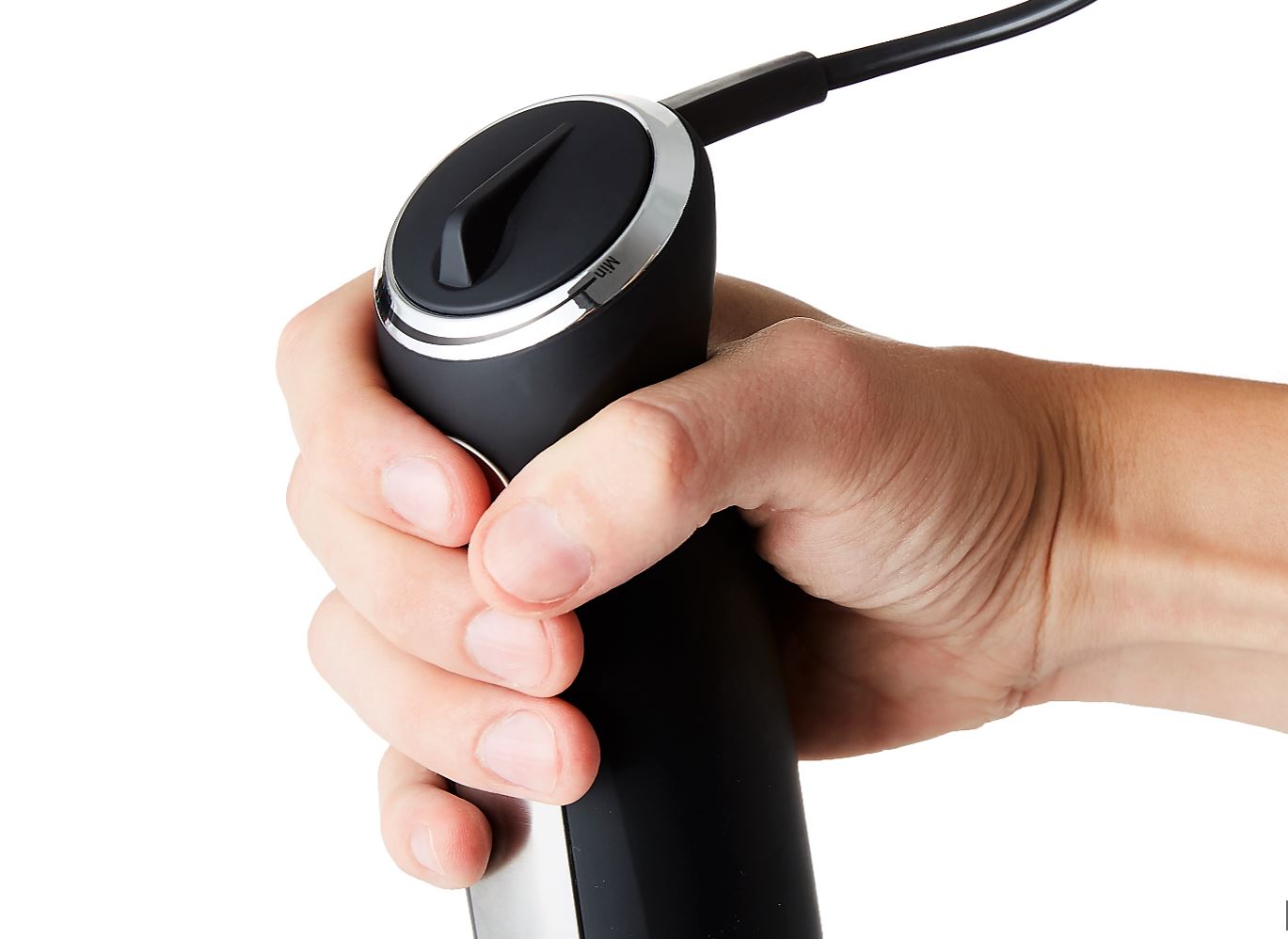 Sa finition gomme lui donne une prise en main agréable et un grand confort d'utilisation. Deux boutons pour contrôler deux vitesses pendant le mixage. Ce mixeur deviendra vitre votre meilleur allié en cuisine !