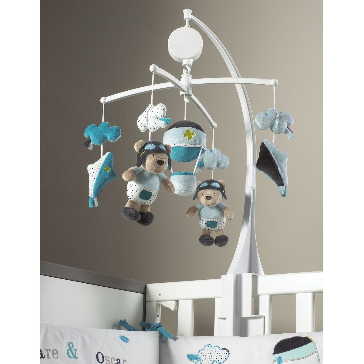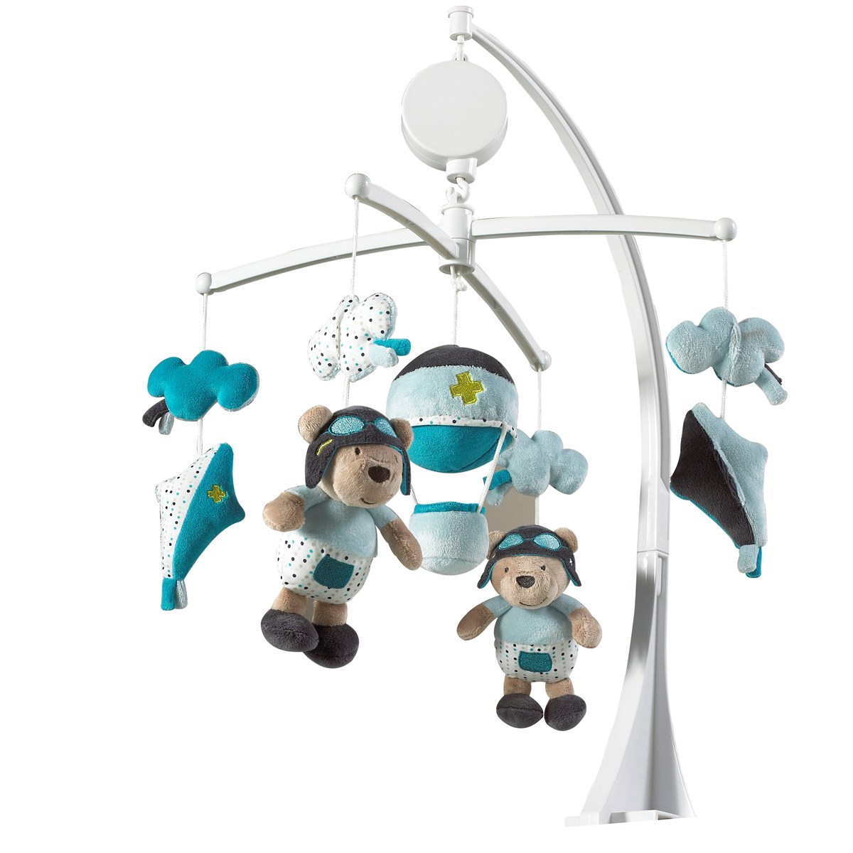 La potence du mobile, les arceaux ainsi que la boîte musicale ne sont pas des jouets, seuls les sujets du mobile peuvent devenir des jouets séparés (sujets lavables en machine à 30°C).