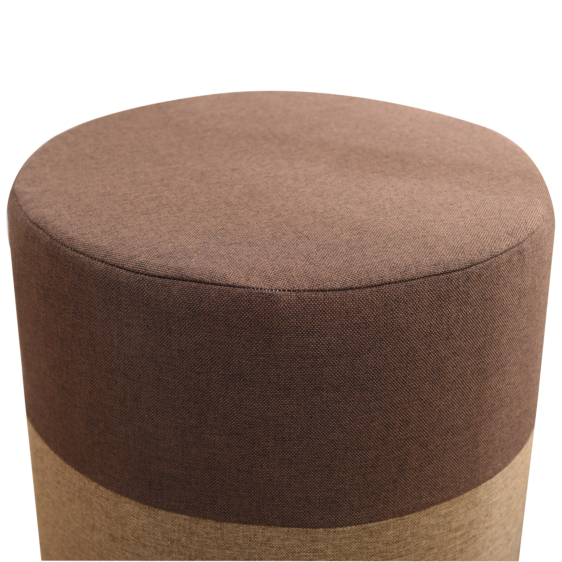 Mobili Rebecca Pouf Assise Tissu Rond Marron Beige Vintage 45x35x35