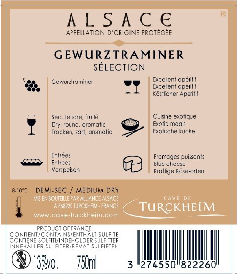 | Appellation viticole | Alsace Gewurztraminer |