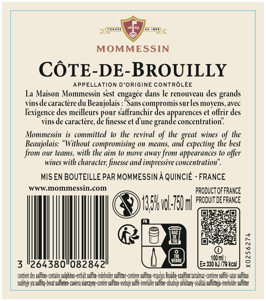 | Libellé | Mommessin, 2022 - Côte de Brouilly AOP - Rouge - 75 cl |