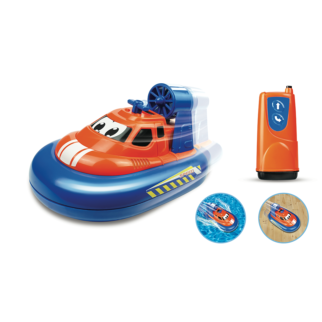 Mon aéroglisseur radiocommandé - 16 cm Rien n'arrête ton véhicule : au sol ou dans l'eau, il va toujours à fond ! Technologie 2.4 Ghz pour une utilisation intérieure/extérieure. Piles : 4 x AA (non incluses). A partir de 3 ans.