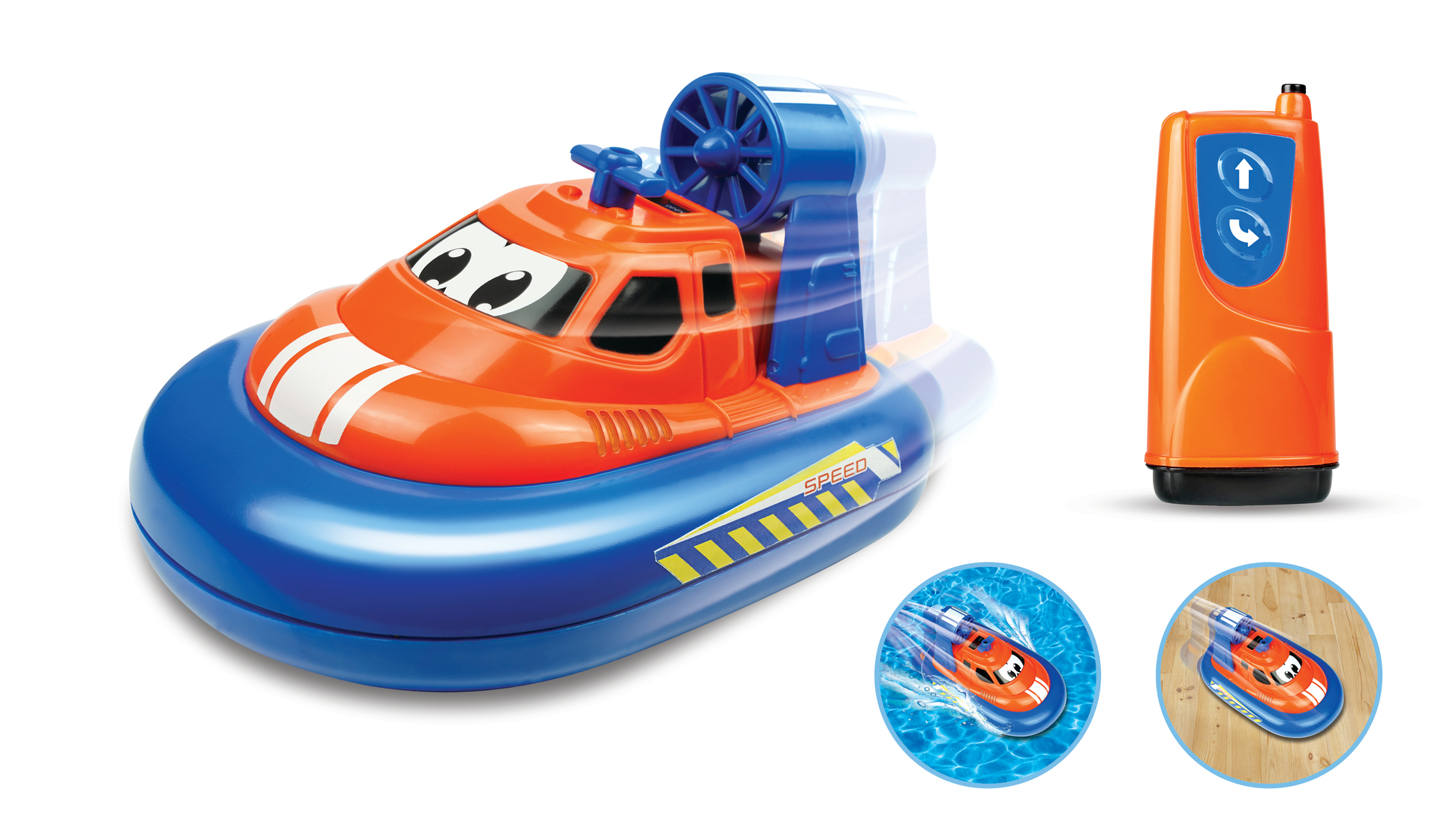 Mon aéroglisseur radiocommandé - 16 cm Rien n'arrête ton véhicule : au sol ou dans l'eau, il va toujours à fond ! Technologie 2.4 Ghz pour une utilisation intérieure/extérieure. Piles : 4 x AA (non incluses). A partir de 3 ans.