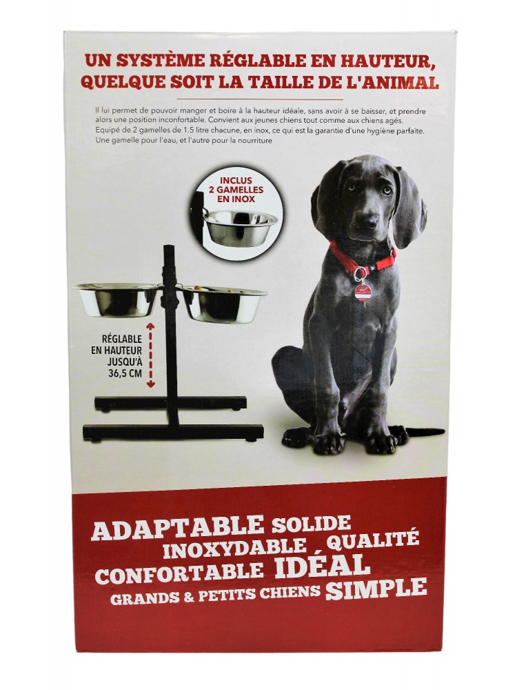 Libellé Mon ami Luki - Support réglable hauteur avec 2 gamelles - INOX - chien - 21CMS