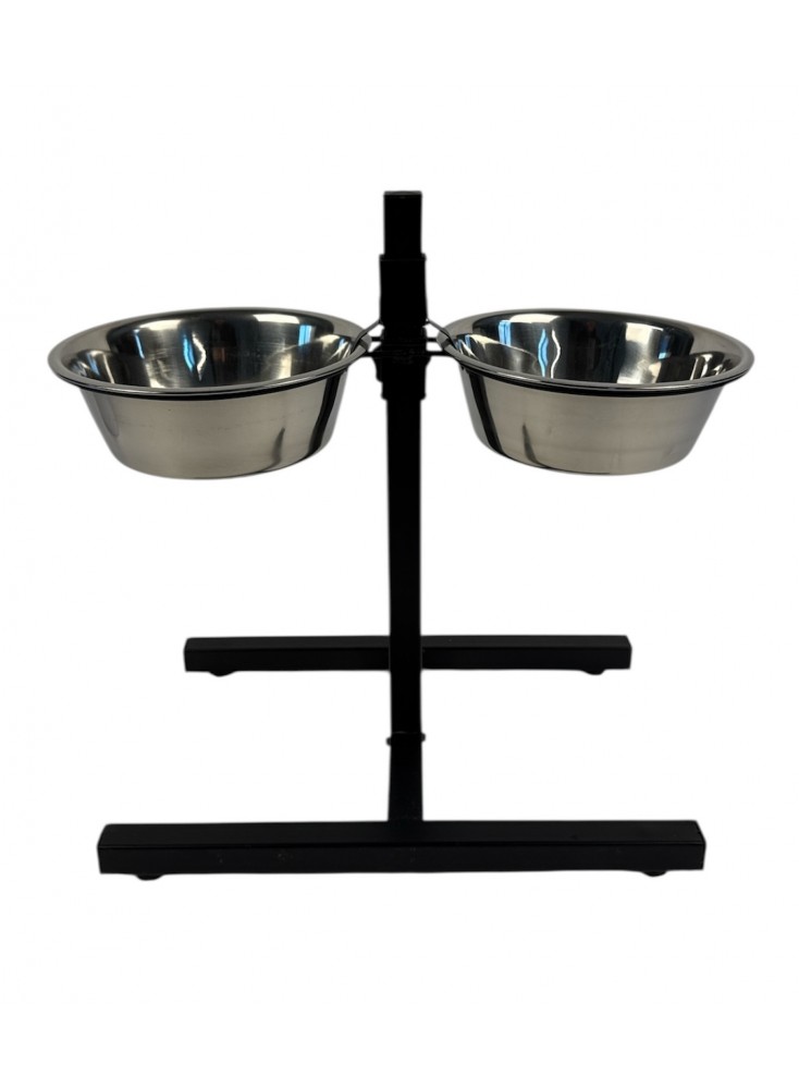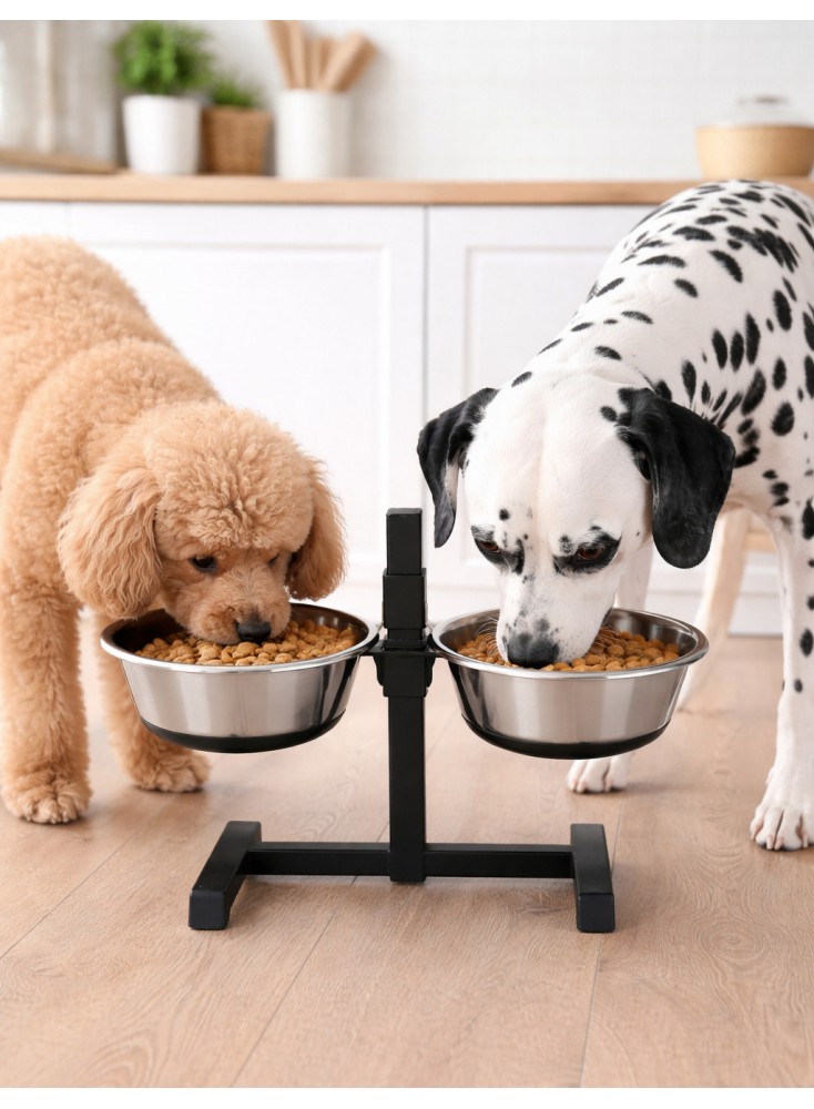 Support réglable en hauteur avec 2 gamelles en inox de 21 cm : Idéal pour une alimentation confortable et hygiénique de votre animal.