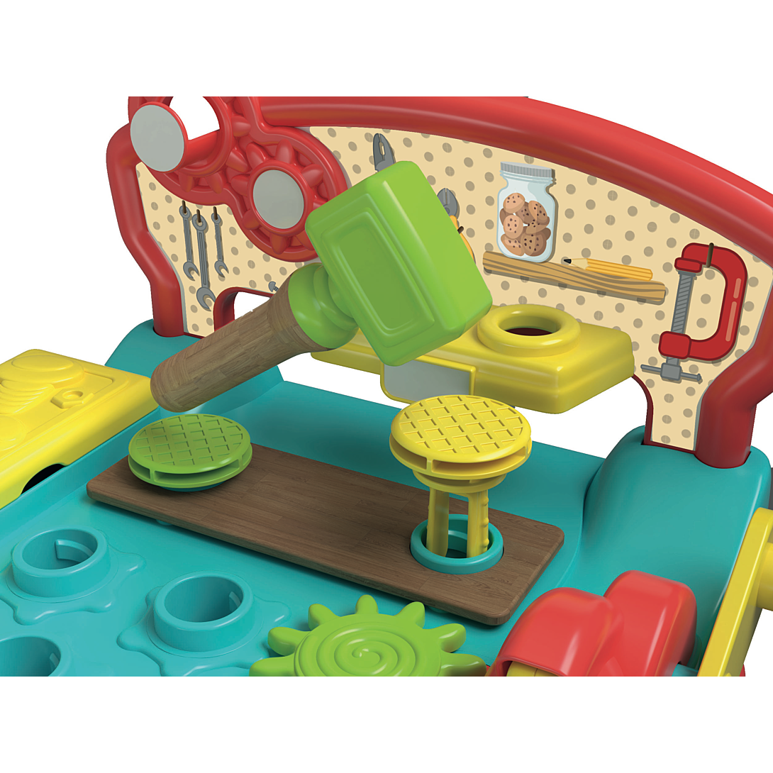 • Un atelier de bricolage Montessori pour jouer avec différents outils. • Un marteau, un tournevis et de nombreux accessoires dont des vis et des boulons à manipuler. • Lorsque Bébé tourne la manivelle de la scie circulaire, il active le mouvement mécanique des engrenages, pour un effet incroyable !