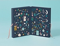 Sur le thème de la féerie des Mille et une nuits, un calendrier de l'Avent contenant de 24 surprises créatives dans des pochettes en kraft aux motifs liberty : bijoux à confectionner, tatouages éphémères, pin's, autocollants, accessoires à cheveux et autres rouleaux de ruban adhésif.