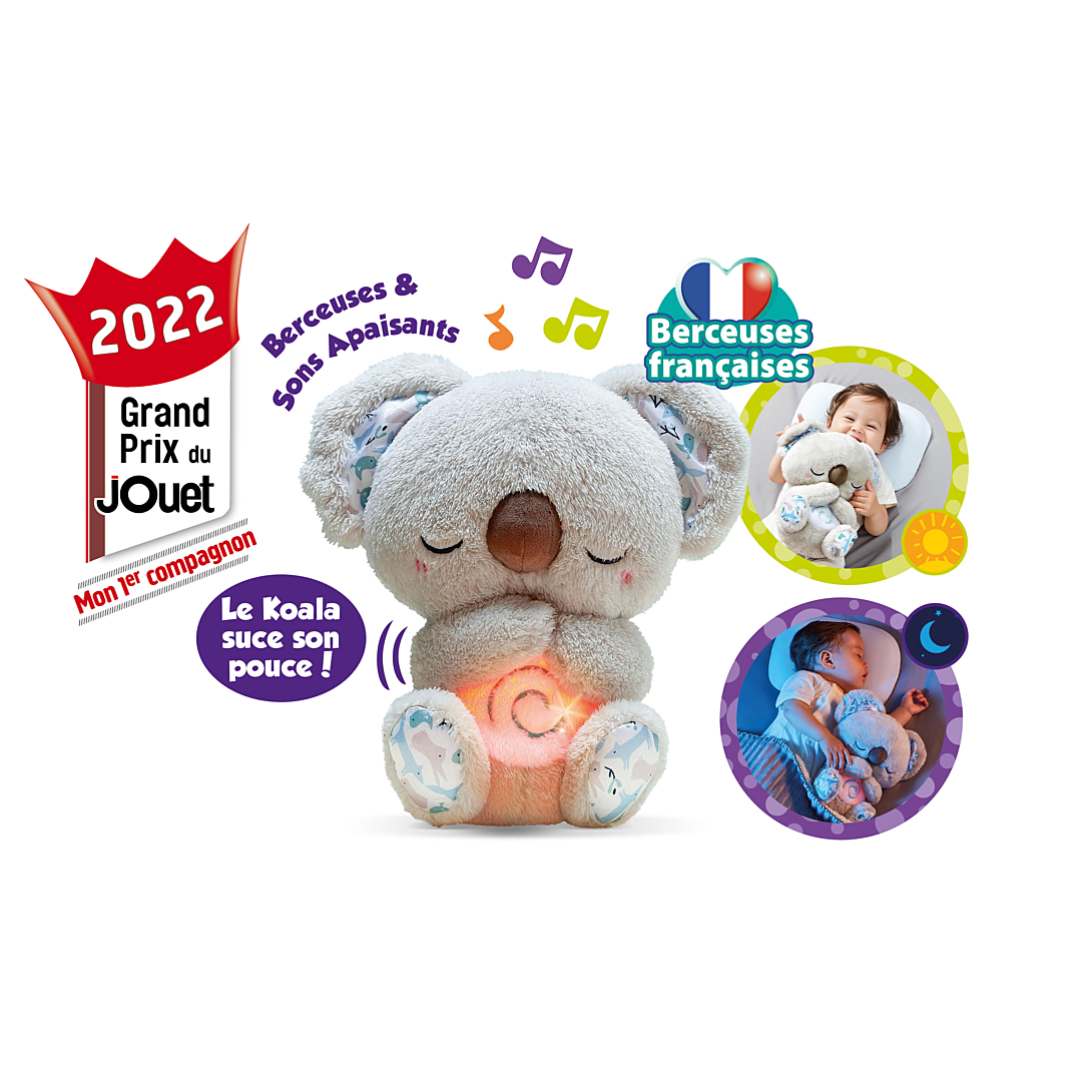 Le compagnon de l’ enfant pour favoriser son endormissement et l’accompagner dans de doux rêves ! 10 berceuses, 5 bruits blancs, lumières douces, mouvements de succion ...