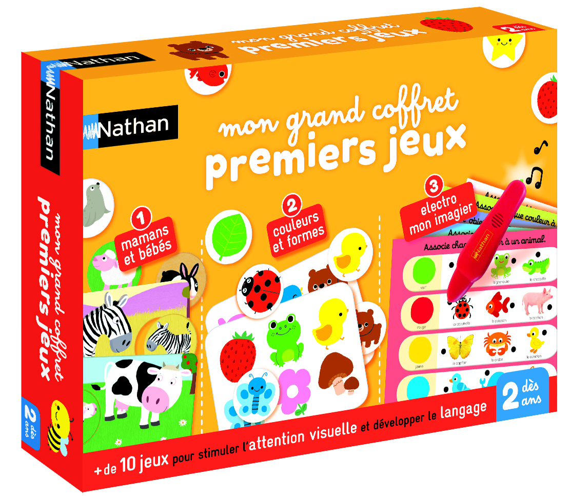 Un grand Coffret très complet et évolutif pour découvrir et apprendre à travers de 3 jeux différents les animaux, les formes, les couleurs et faire ses premiers apprentissages