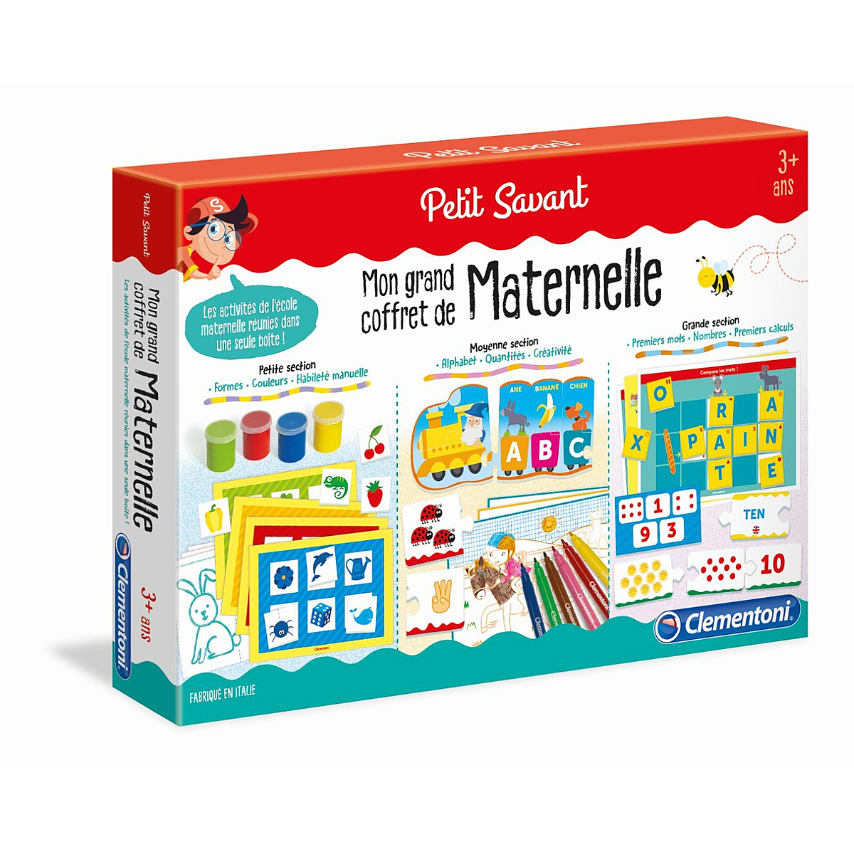 Un coffret complet comprenant des jeux éducatifs et des activités préscolaires. Pour rendre l'apprentissage encore plus amusant et pour stimuler la créativité des jeunes enfants, le coffret comprend également des peintures non toxiques et lavables pour la peinture au doigt, ainsi que des feutres pour encourager les enfants à dessiner. Des activités conçues pour stimuler les compétences manuelles, logiques, mathématiques et linguistiques.