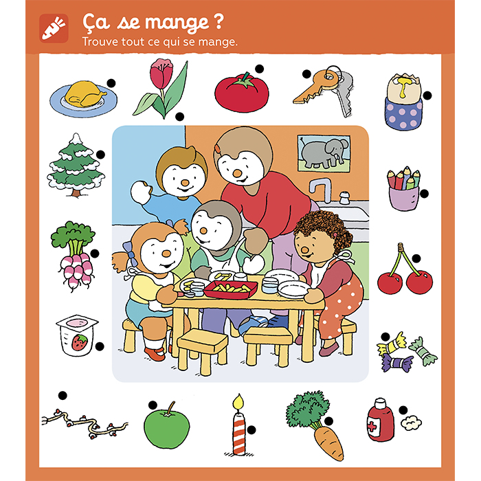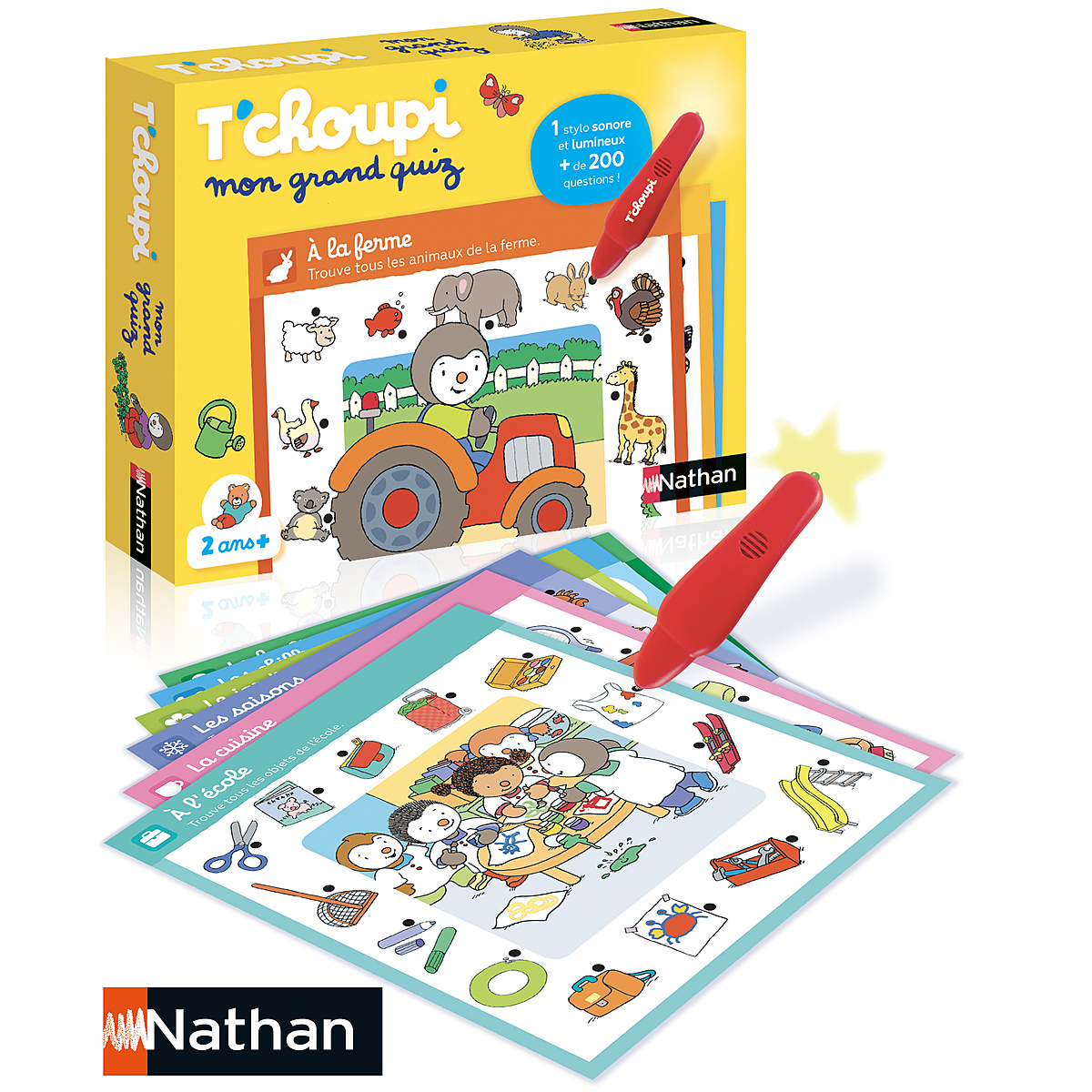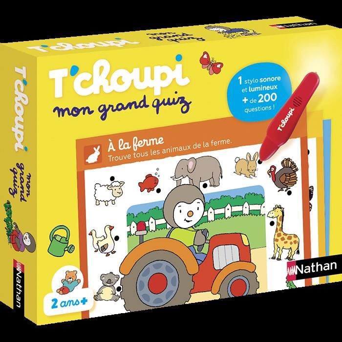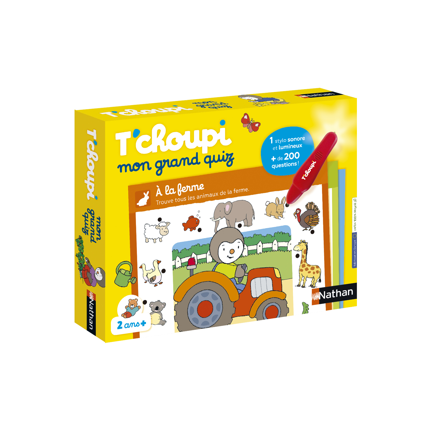 Un jeu électronique de questions-réponses pour découvrir l'univers de T'choupi. 12 thèmes pour apprendre à associer les objets aux pièces de la maison, les quantités, les couleurs ...