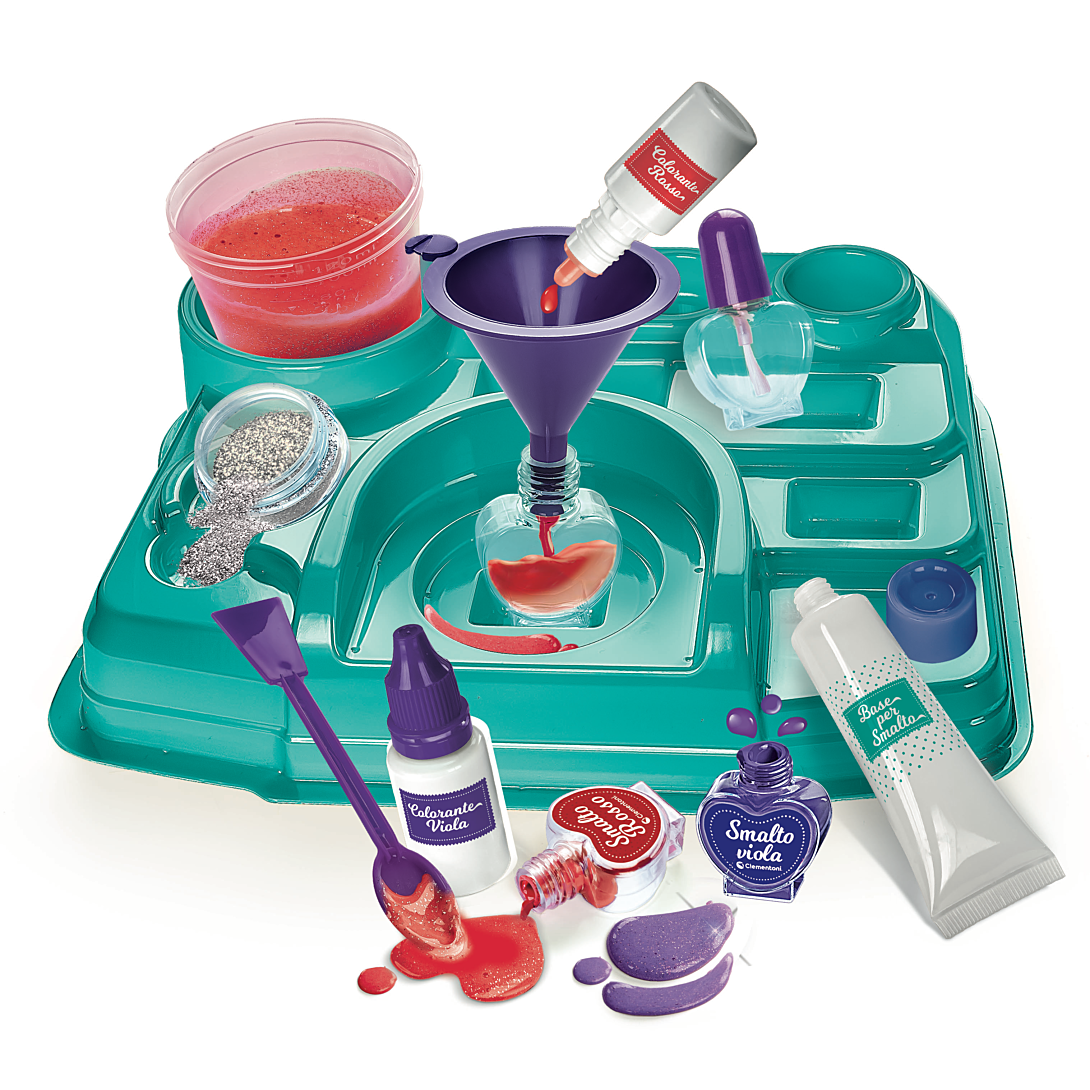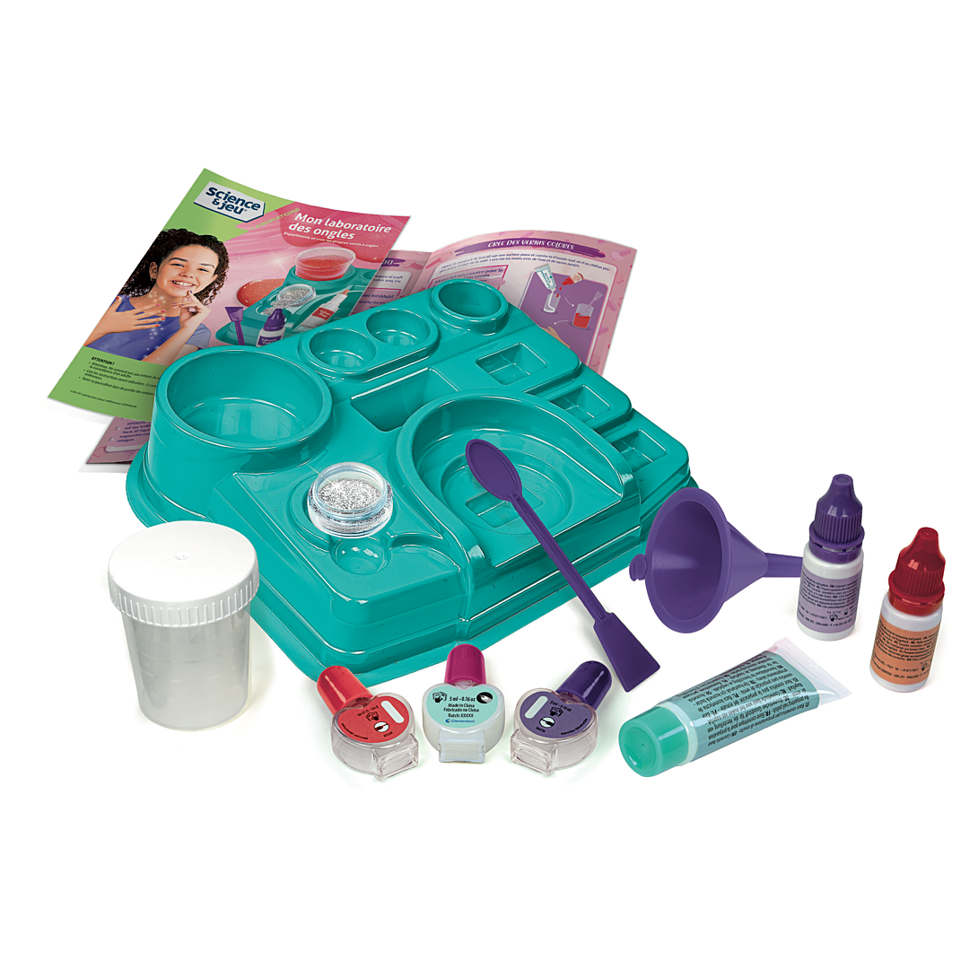 • Un coffret scientifique ludique et créatif qui apprend aux enfants tous les secrets du soin des ongles et du nail art. • La console pratique permet de mélanger la base avec les colorants fournis et de créer de magnifiques vernis à ongles. • Les autocollants et les paillettes sont parfaits pour libérer la créativité. • Tous les accessoires nécessaires à l'expérimentation sont également inclus. • Le manuel contient des notions scientifiques pratiques et intéressantes sur le nail art.