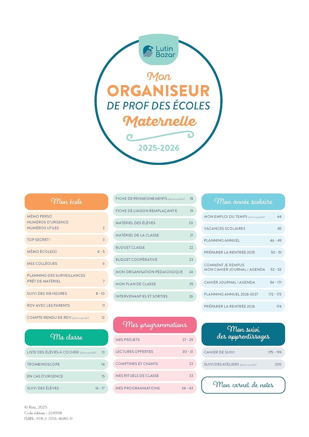 | Titre de l'œuvre | Mon organiseur de prof des écoles Maternelle 2025-2026 |