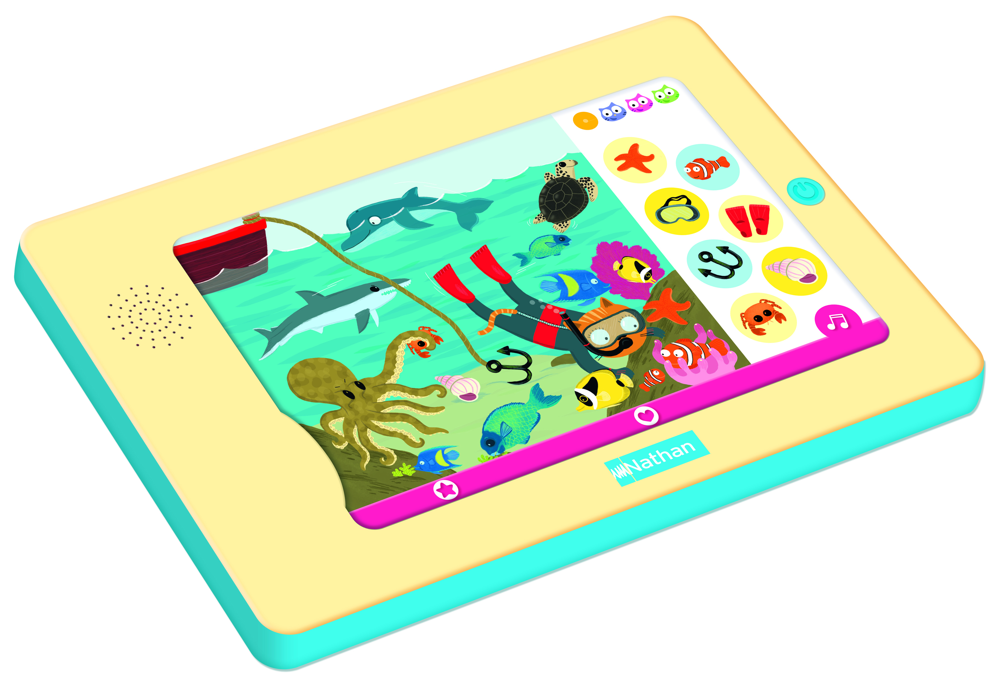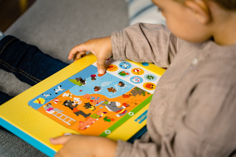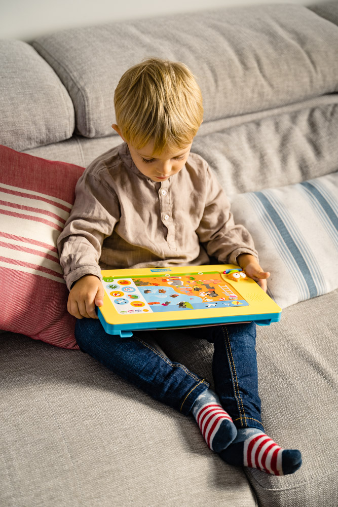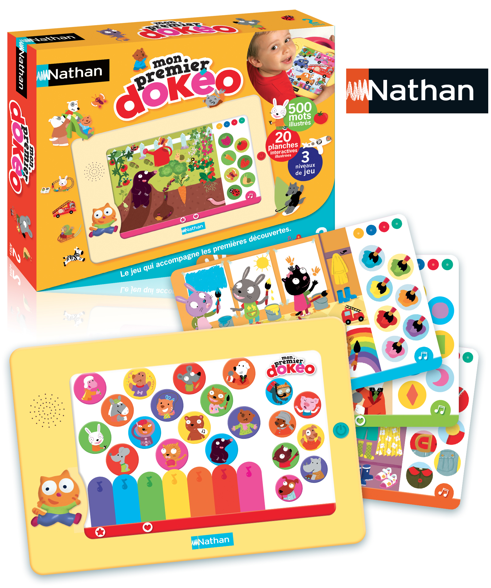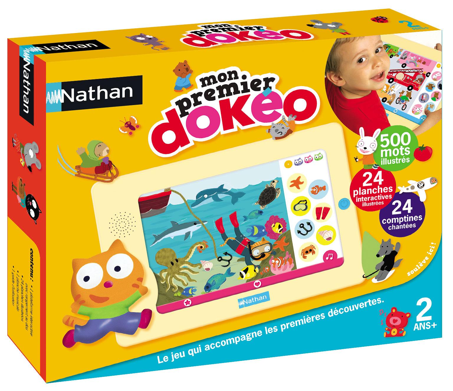 Une première encyclopédie parlante pour les petits. Il suffit d'appuyer sur l'image avec son doigts : Dokéo parle, chante, raconte... Sur chaque planche : un mode découverte, un mode imagier, 3 jeux de difficulté progressive et une chanson. Les premières découvertes : la maison, la ville, les animaux, les chiffres, les formes, les couleurs, les contraires ... Avec un emplacement au dos pour ranger les planches.