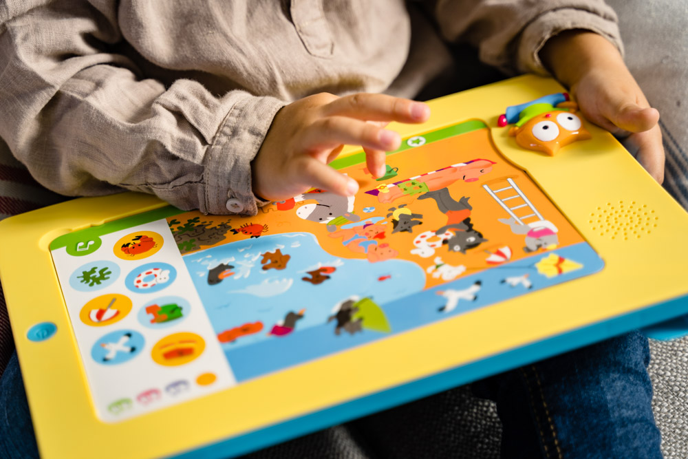 | La boîte contient | 1 jeu électronique avec rangement au dos, 24 planches et 1 planche d'éveil musical, 1 boîte "try me". |
