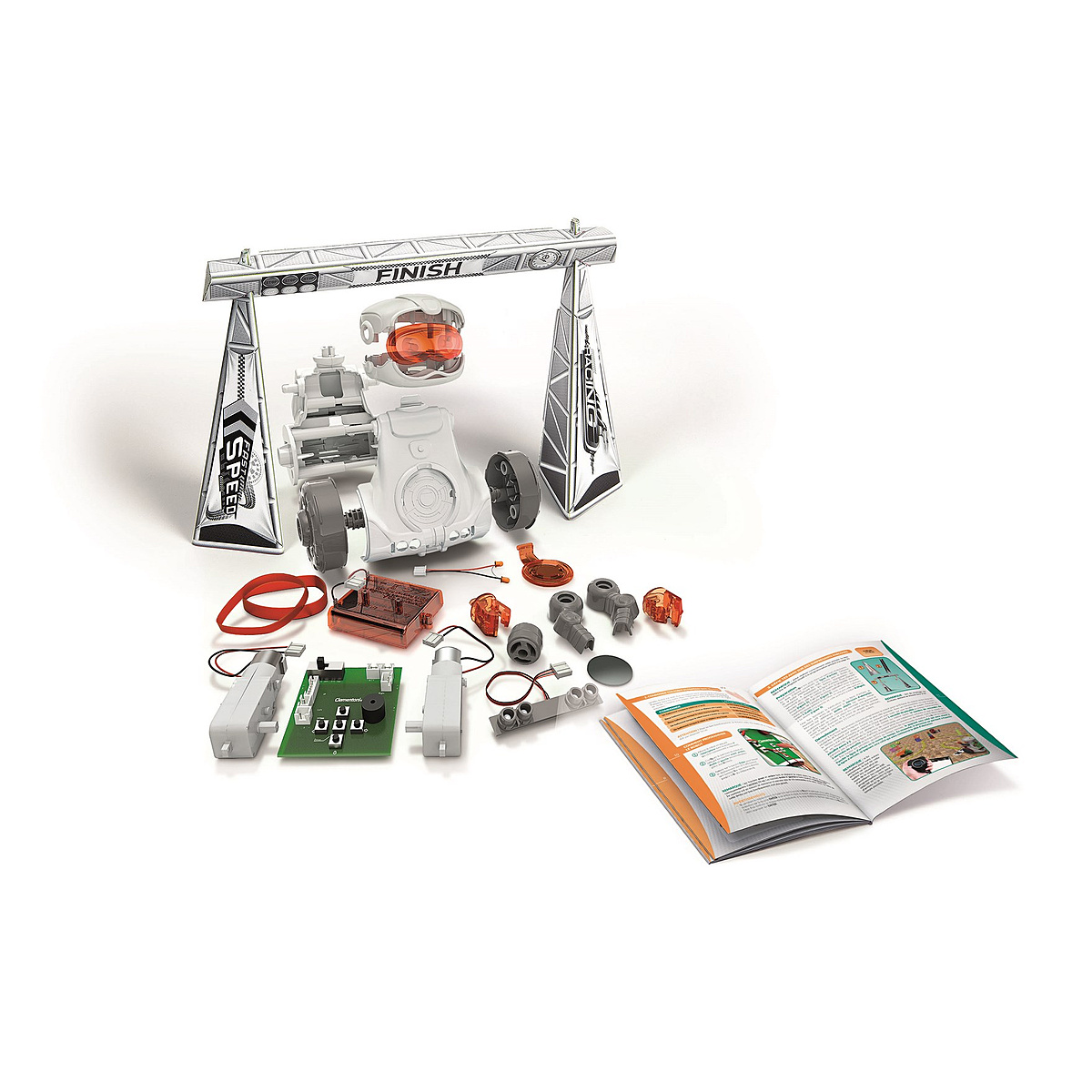 Un robot unique et original à assembler, avec de nombreux modes de jeu amusants ! Grâce aux deux capteurs infrarouges, le robot peut éviter les obstacles ou encore suivre ta main. Tu peux utiliser le microphone pour le commander en frappant dans tes mains, ou utiliser les boutons sur son dos pour programmer son itinéraire. L'application gratuite comporte deux sections de jeu : le codage, pour apprendre les principes de la programmation par blocs, et le mode en temps réel, pour contrôler les mouvements, les sons et les effets lumineux comme si tu utilisais une véritable télécommande. Enfin, avec le porte-stylo et le porte-aimant, tu pourras dessiner ou programmer ton robot pour qu'il recherche de petites pièces de monnaie ou des trombones.