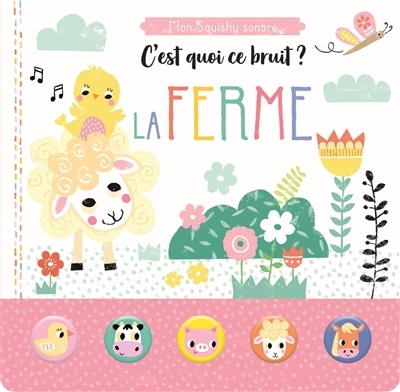 Un matin, Tchip le poussin entend un étrange bruit dans la ferme. Il part à la rencontre de ses amis pour savoir qui fait ce bruit. Un livre sonore avec 5 boutons en squishy pour découvrir les cris des animaux de la ferme. Une jolie histoire et des illustrations tendres et colorées. Les squishy sont des petites figurines en silicone mou que les jeunes enfants adorent manipuler.