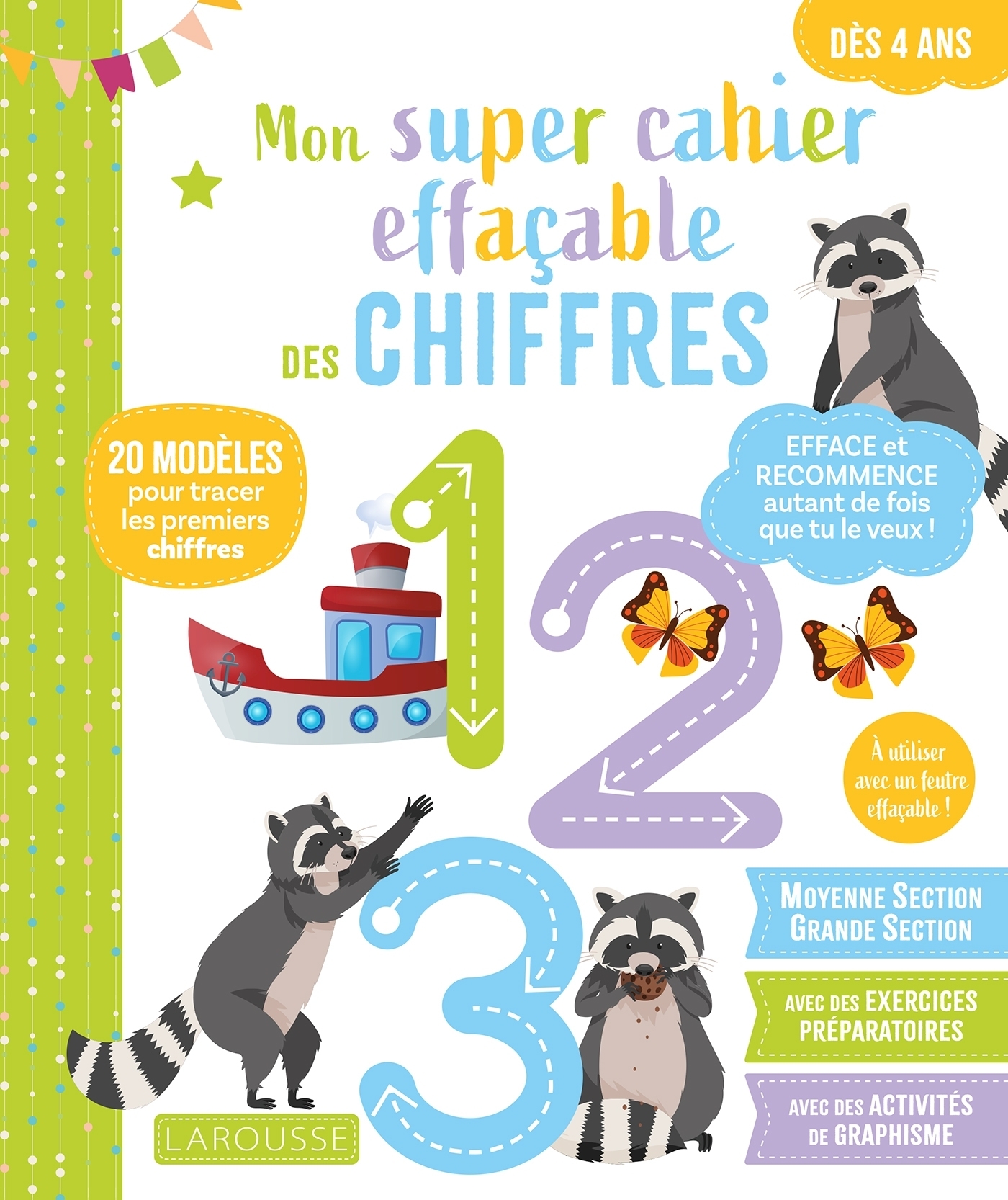 Titre de l'œuvre Mon super cahier effaçable - Chiffres - De la Moyenne section à la Grande section 4-5 ans