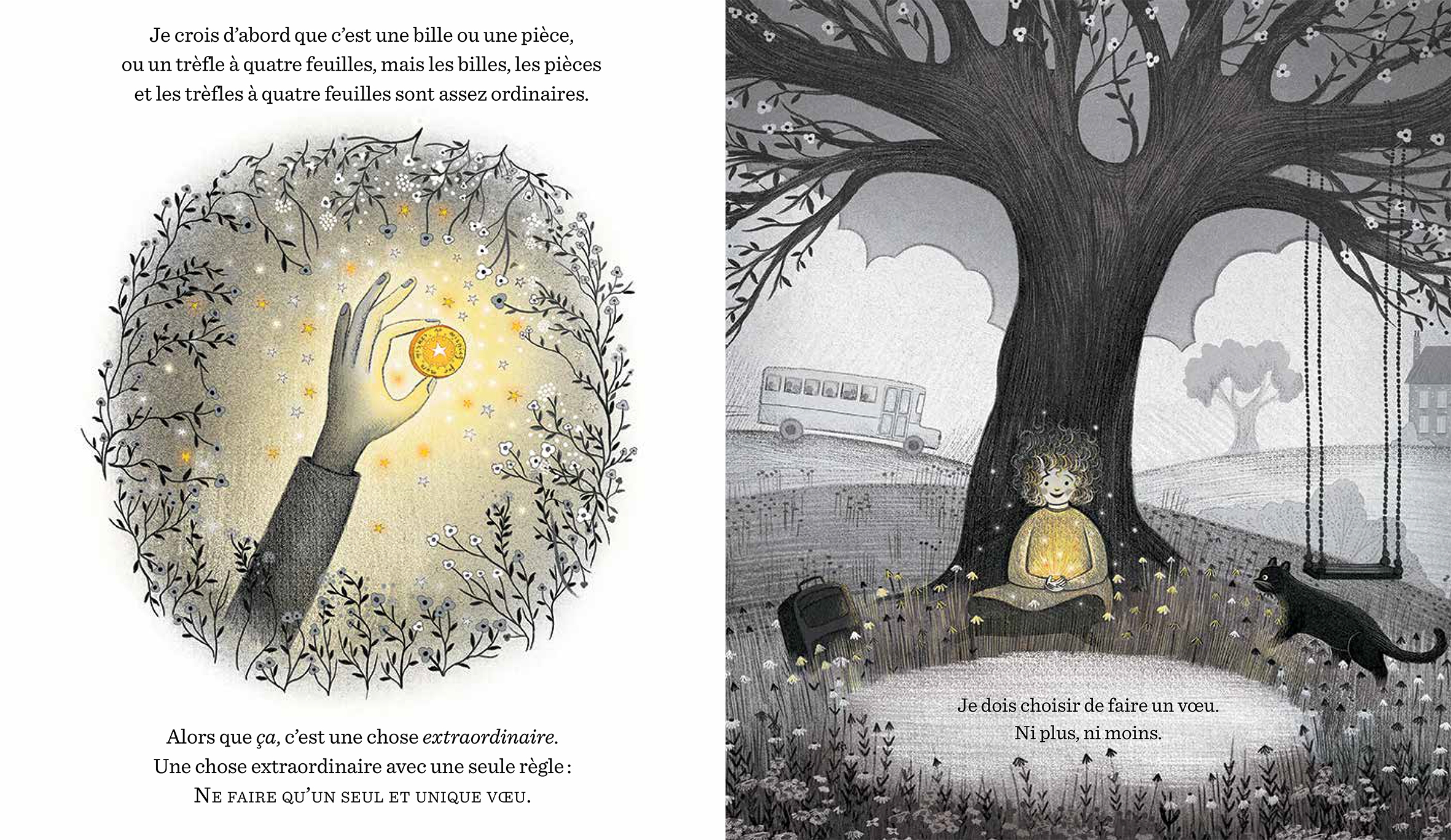 Dans l'herbe, une petite fille trouve quelque chose d'extraordinaire : un vœu. Mais elle doit en faire un seul, ni plus ni moins !