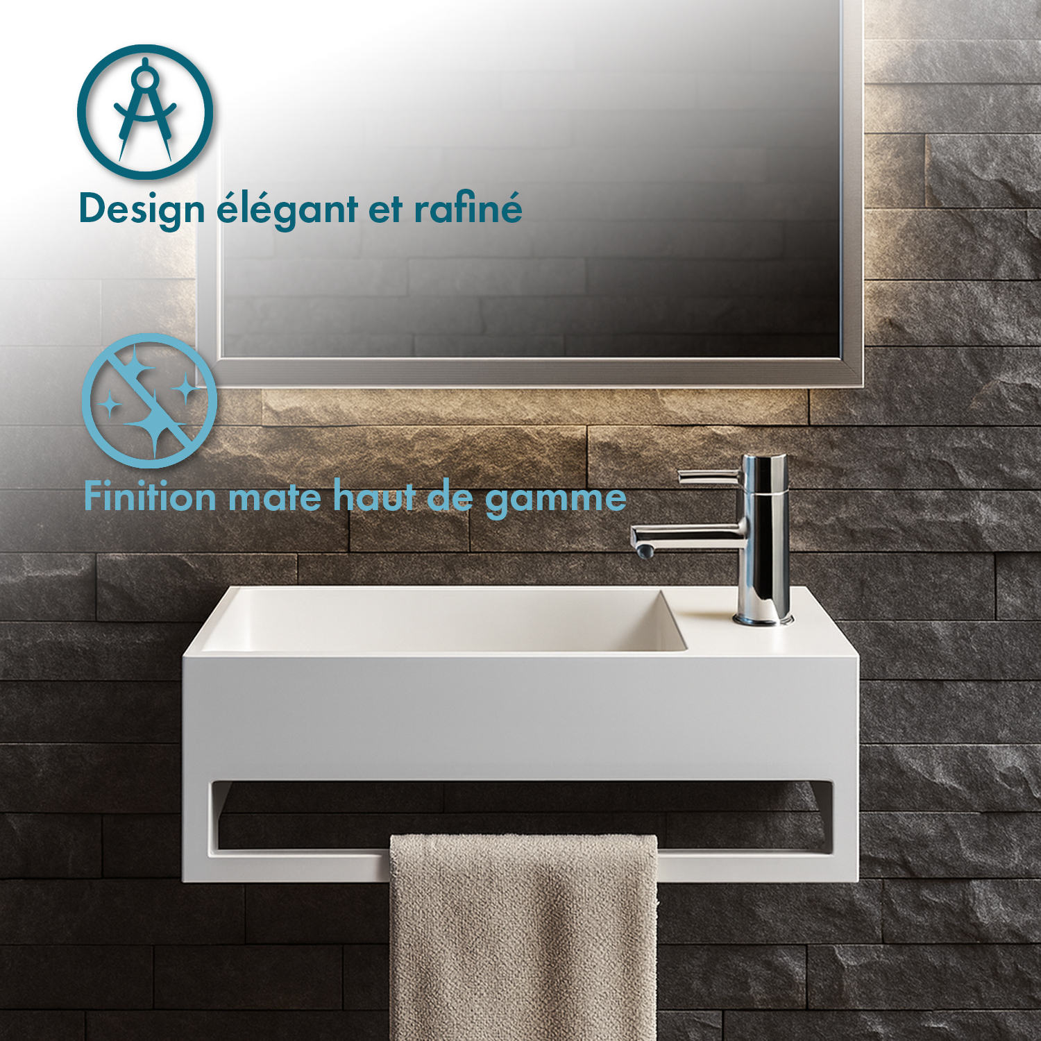 MONA D - Lave-mains rectangulaire suspendu - Design Elégant et Raffiné - Solide et Robuste - Entretien Fa