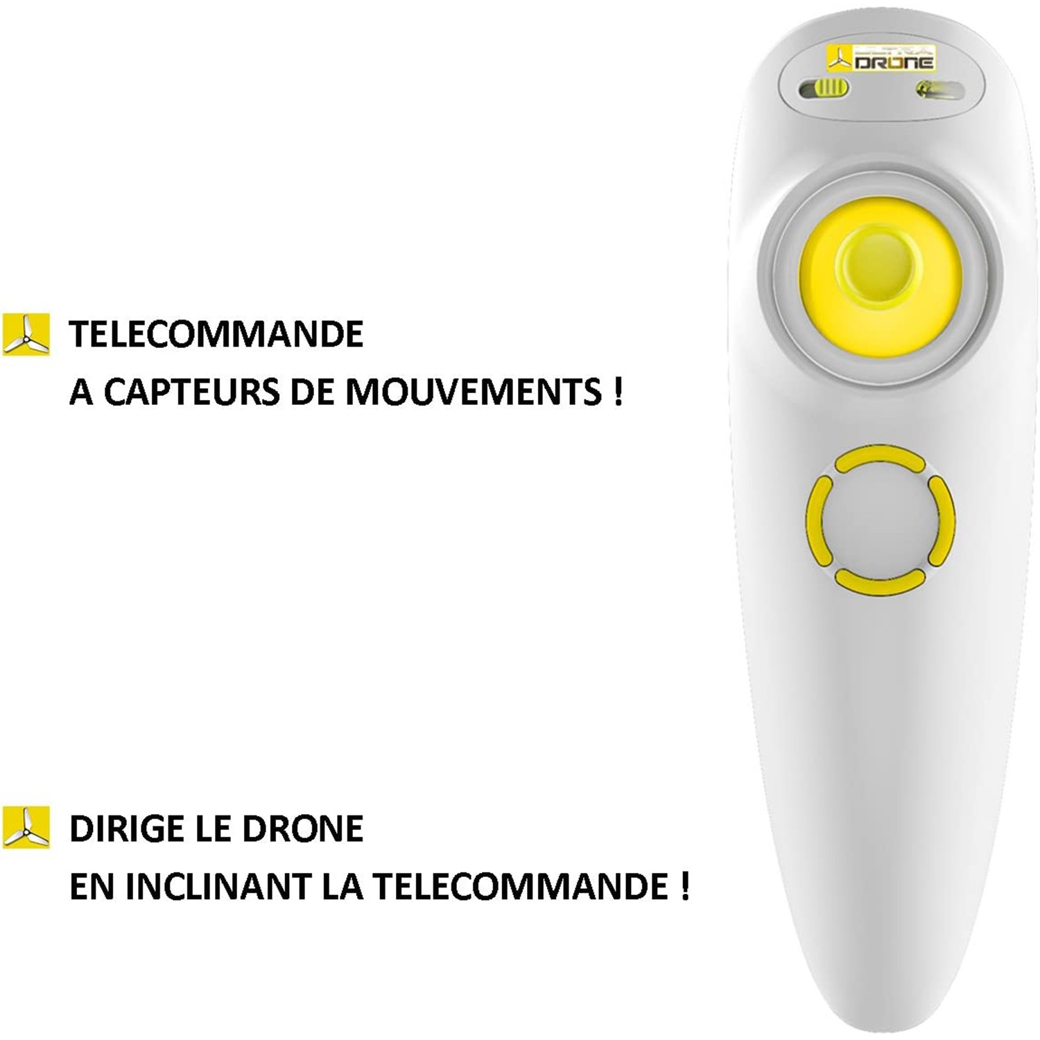 Cette télécommande intègre des capteurs de repérage spatial permettant à l'utilisateur de diriger le drone (avant/arrière/gauche/droite) en inclinant la télécommande dans la(les) direction(s) voulue(s) ! Une nouvelle façon de piloter.