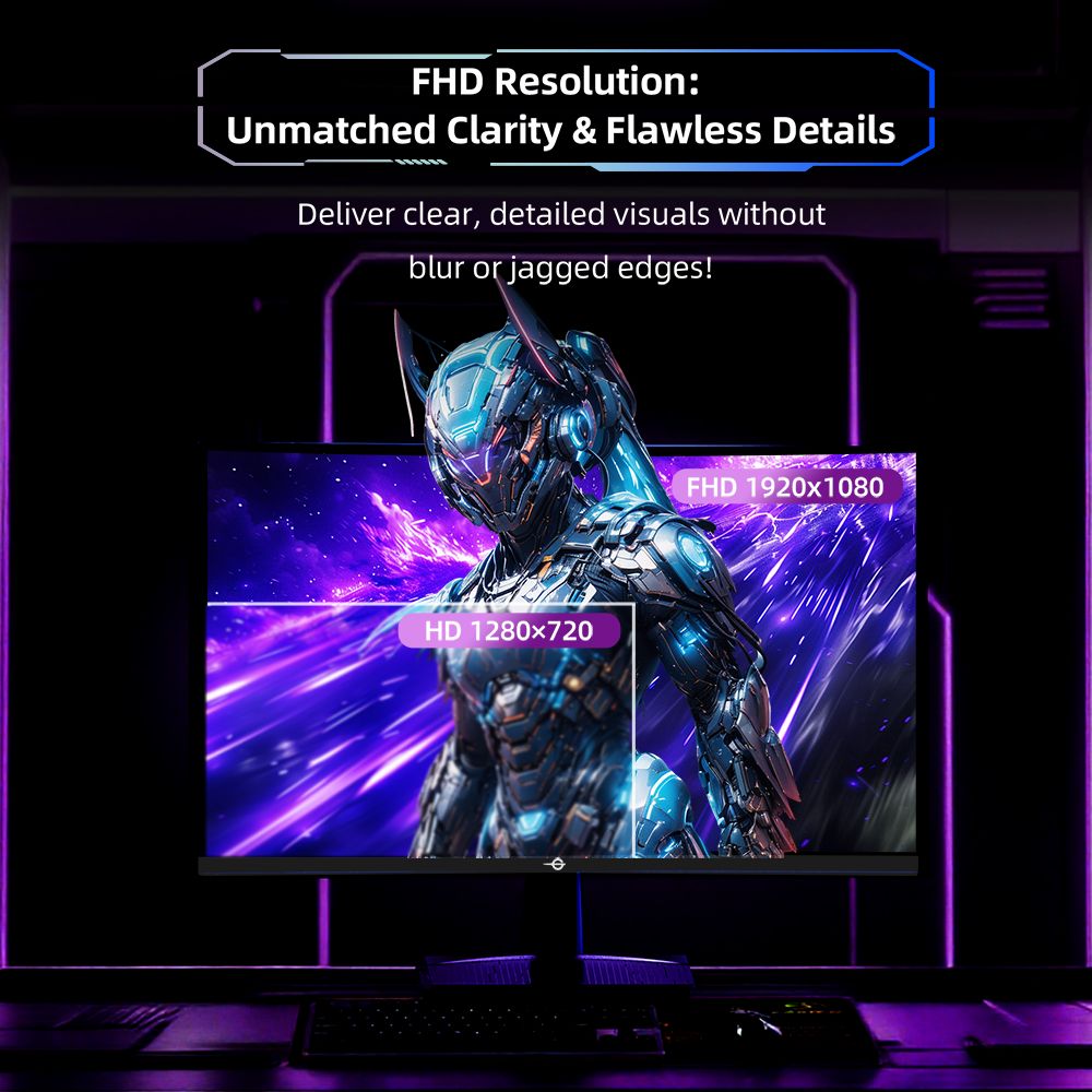 Le moniteur de jeu C24A1H dispose d'une résolution FHD 1920x1080 impressionnante, offrant des images claires et vives pour le jeu, la visualisation vidéo et le travail. Avec la prise en charge HDR10, le C24A1H propose trois modes HDR prédéfinis, incluant Auto-HDR, HDR pour le jeu et HDR pour les films, vous permettant de vivre une expérience visuelle plus immersive et réaliste, que vous regardiez un film ou jouiez à un jeu.