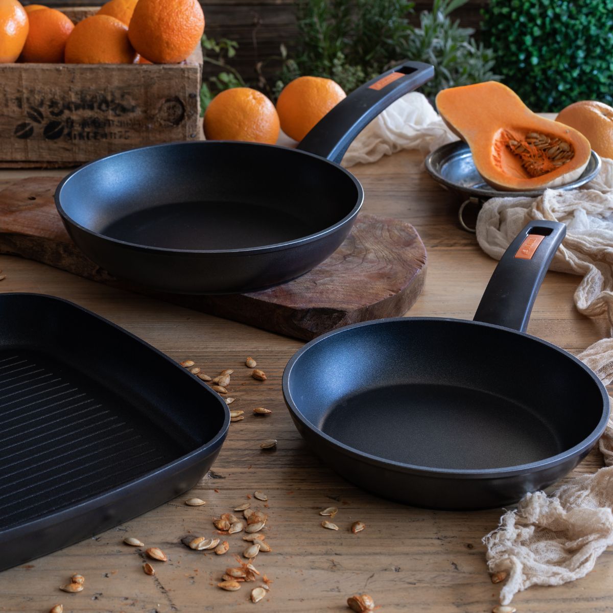 La gamme Fuego est idéale pour ceux qui recherchent un équilibre avantageux entre prix et performance. Aluminium forgé de 3,5 à 3,8 mm avec un revêtement antiadhésif bicouche sans PFOA.Caractéristiques :Matériau de base : Aluminium forgé.Fond avec disque en acier inoxydable AISI 430 inséré mécaniquement de 4 à 4,5 mm d'épaisseur (selon les dimensions) valable pour tous les types de cuisines y compris l'INDUCTION.Revêtement antiadhésif XYLAN® de Withford de haute qualité et sans PFOA.Finition antiadhésive extérieure qui assure une longue durabilité et résistance, ainsi qu'un nettoyage facile.Poignée en bakélite thermorésistante au format ergonomique e insert couleur orange.Dimensions :Longueur de baseDiamètre induction18 cm14 cm20 cm16 cm22 cm18 cm24 cm19 cm26 cm21 cm28 cm23 cm30 cm25 cm