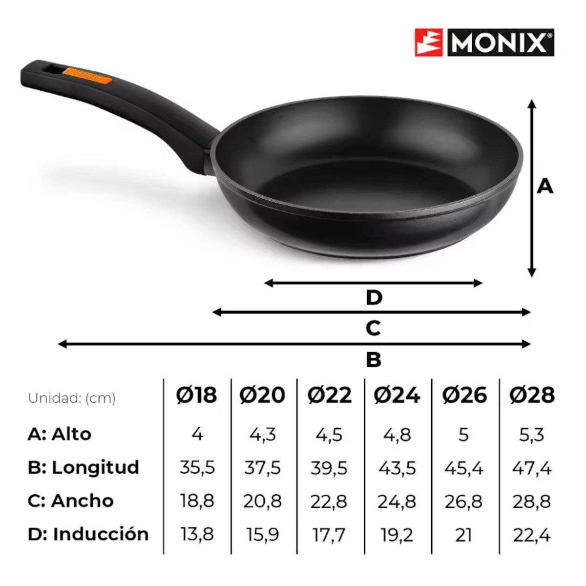 MONIX Fuego | Poêle 28 cm en aluminium forgé, antiadhésive double couche, sans PFOA, manche en bakélite,