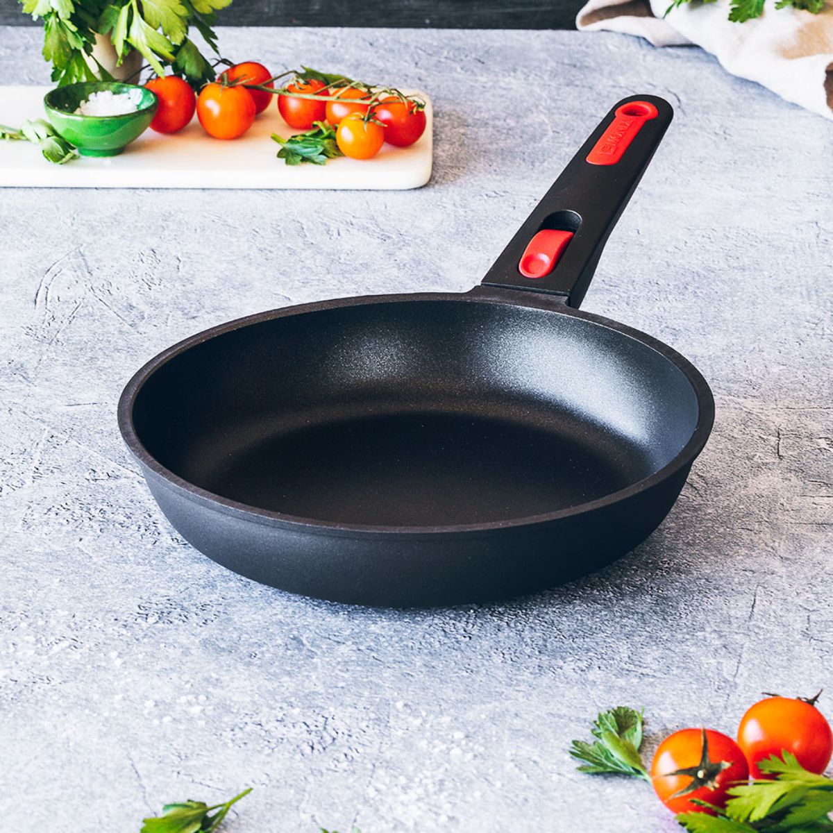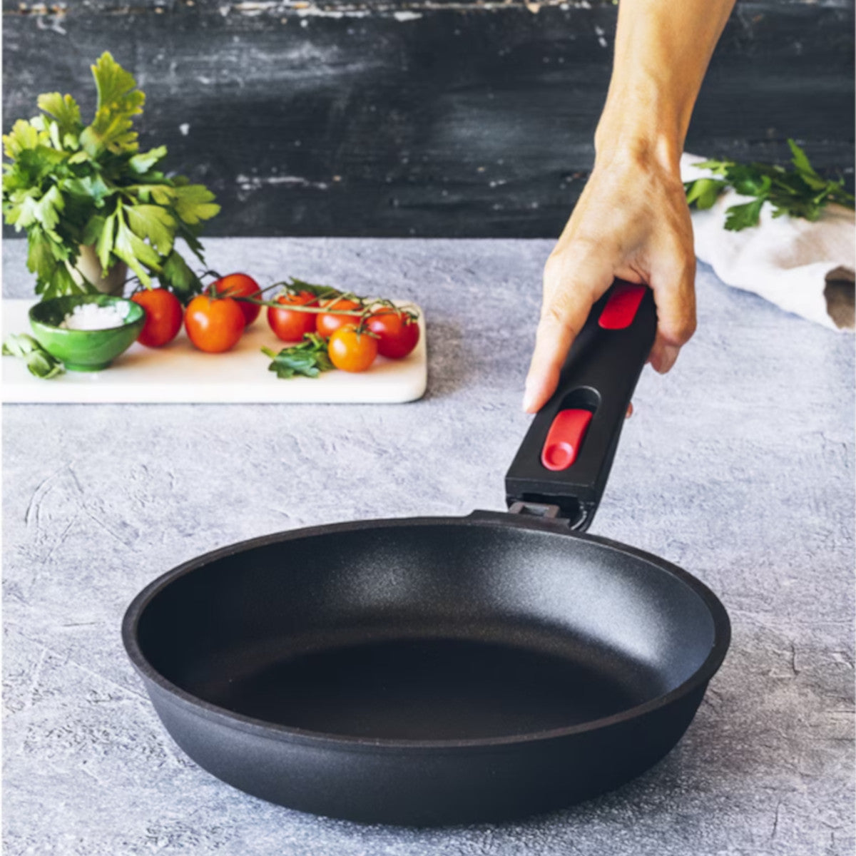 IN&OUT est la nouvelle gamme complète de poêles et de grills MONIX de haute résistance grâce à la fonte d'aluminium indéformable, qui vous permettra de profiter chaque jour de la "cuisine durable", car elle assure :Une plus grande économie d'énergie : Grâce à sa conception et aux matériaux utilisés, la pièce chauffe rapidement en utilisant moins d'énergie.Une cuisine plus saine : Son revêtement antiadhésif triphasé TEFLON® INNOVATIONS de grande qualité et de résistance vous permettra de cuisiner avec peu de graisses et d'huiles, évitant à tout moment que les aliments ne collent ou ne brûlent, ce qui signifie cuisiner sainement et éviter les risques pour la santé.Cette collection novatrice offre d'excellents résultats de cuisson avec une grande praticité, grâce à sa poignée ergonomique amovible qui non seulement vous fera gagner de l'espace, mais est également adaptée au four. Tout cela en un seul mouvement : vous constaterez qu'il est très facile à mettre et à enlever. De plus, grâce à son fond diffuseur full induction, elle est adaptée à toutes les sources de chaleur (y compris l'induction) et a une excellente répartition de la température pour une cuisson parfaite de toutes nos recettes.Caractéristiques :Fabriquée en aluminium de la meilleure qualité, assurant une utilisation à vie comme si c'était le premier jour.Revêtement antiadhésif intérieur ® INNOVATIONS de la plus haute qualité et sans PFOA.Épaisseur de 5,3 mm qui assure la meilleure transmission de la chaleur à la pièce.Adaptée à tous les types de plans de travail, y compris ceux à induction.Corps adapté pour une utilisation au four jusqu'à 220ºC (sans poignée).Facile à nettoyer et à ranger grâce à sa poignée amovible.Adaptée pour nettoyage au lave-vaisselle. Dimensions :Diamètre extérieurDiamètre intérieur18 cm13 cm20 cm14 cm22 cm16 cm24 cm17 cm26 cm19 cm28 cm21 cm