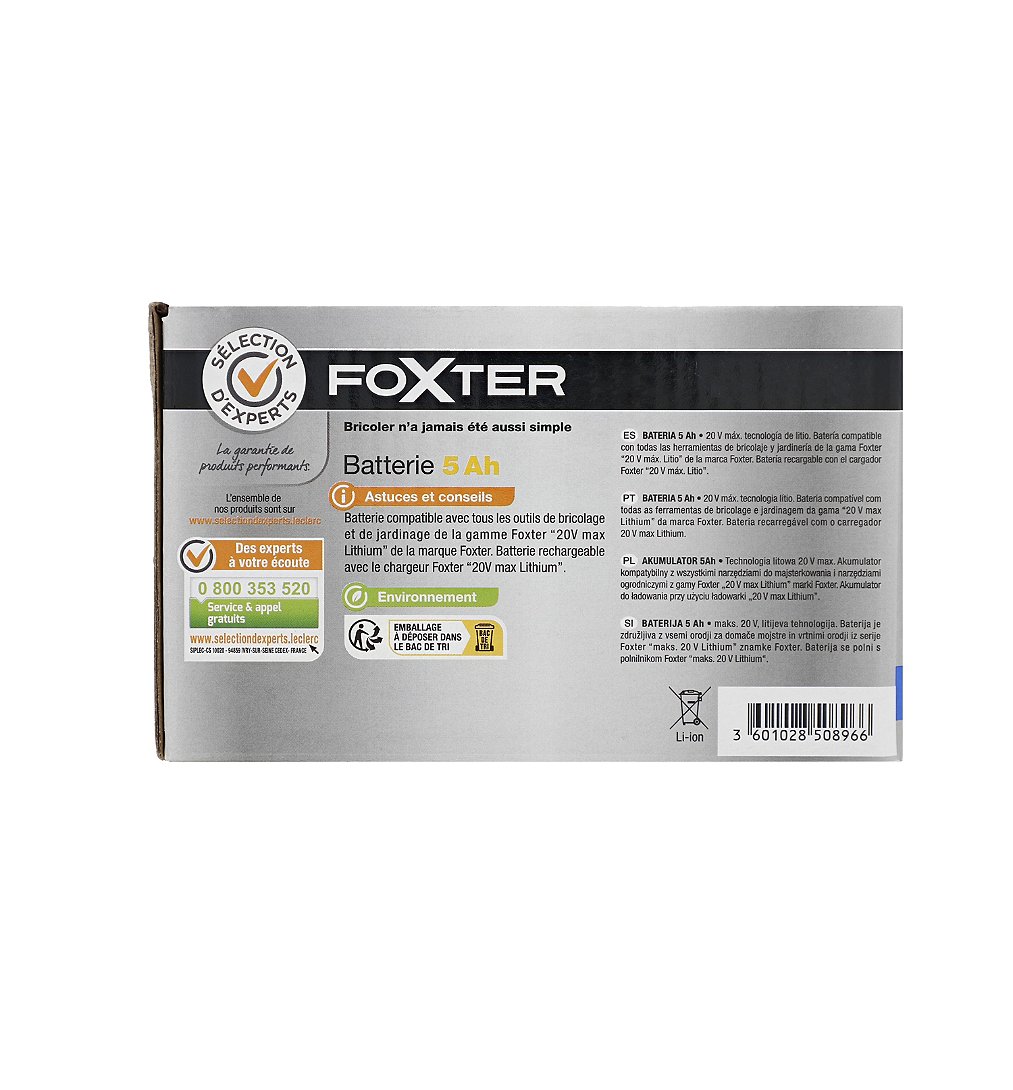 | Libellé | Monobatterie 20V Max - Batterie 5Ah - Sélection d'Experts - Foxter |