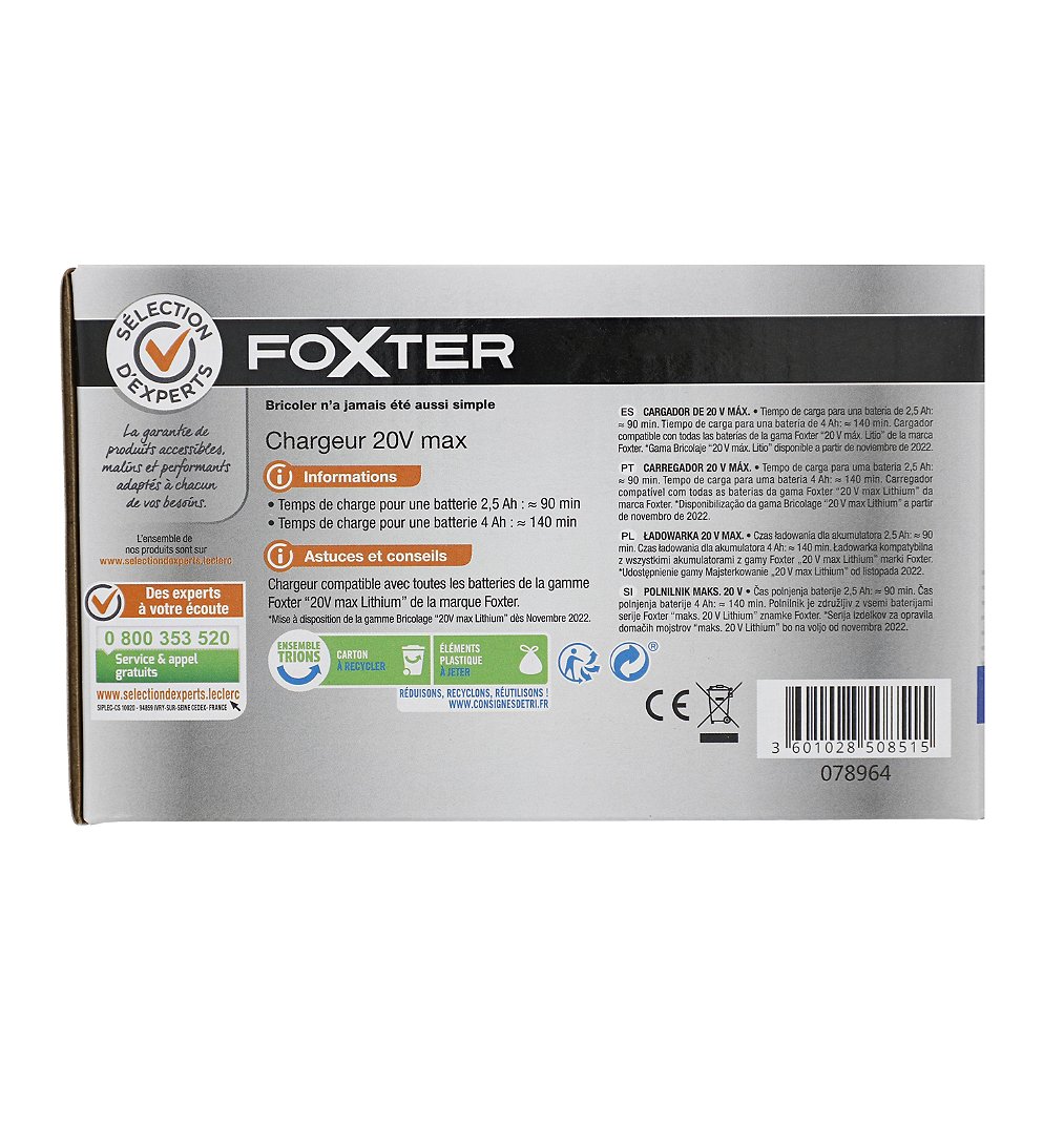 | Libellé | Monobatterie 20V Max - Chargeur standard simple - Sélection d'Experts - Foxter |
