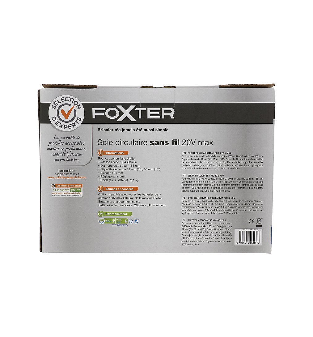 Monobatterie 20V Max - Scie circulaire - Sélection d'Experts - Foxter