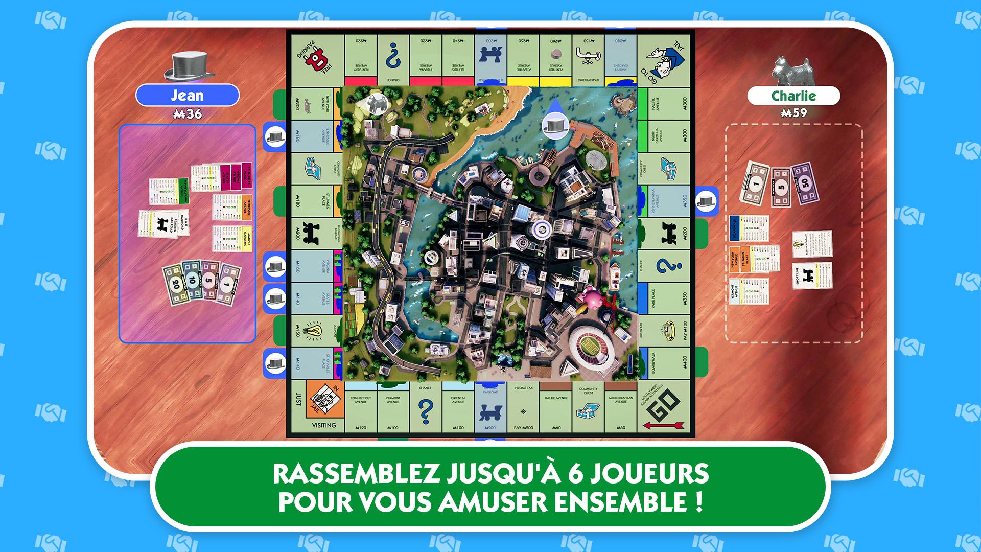 JOUEZ AU NOUVEAU JEU MONOPOLY MONOPOLY 2024 est le jeu parfait pour rassembler la famille, les amis et les voisins ! Jouez avec six joueurs maximum depuis votre salon ou en ligne avec des personnes du monde entier. Choisissez de partager une manette avec tous les joueurs ou d'avoir chacun la sienne pour une variété de styles de jeu. MONOPOLY 2024 prend aussi en charge le cross-play ! L'EXPÉRIENCE D'UN JEU DE PLATEAU Ressentez l'essence d'un jeu de plateau dans toutes vos décisions alors que vous achetez, vendez et échangez pour atteindre la victoire. Vous pouvez à présent manipuler votre pion, le faire se déplacer et sauter. Vous voulez vous venger de votre faillite ? Renversez les pions du responsable ! UN PLATEAU QUI PREND VIE Avec une qualité digne de la nouvelle génération et une ville détaillée en 3D, MONOPOLY 2024 emmène la franchise emblématique au niveau supérieur.