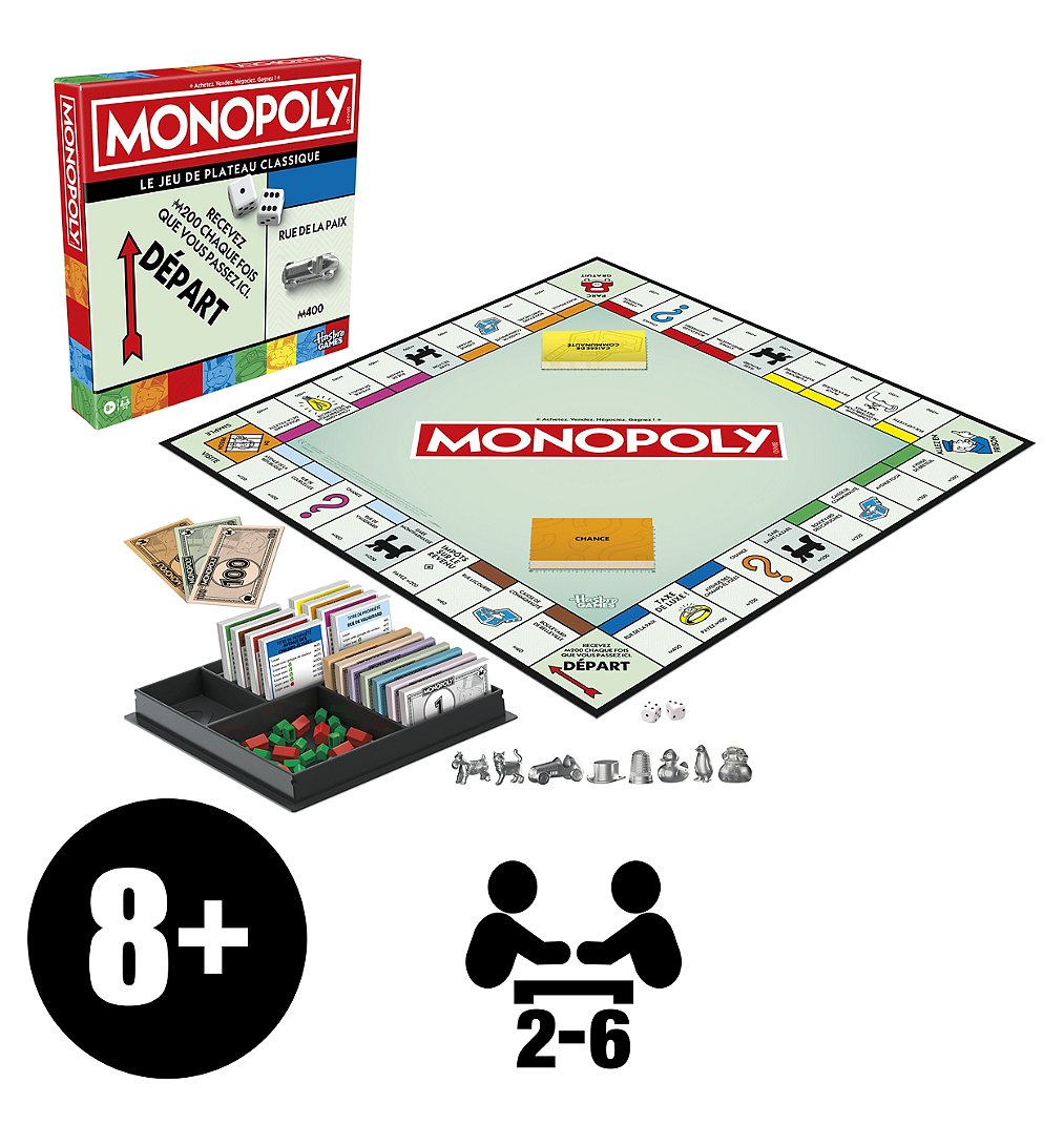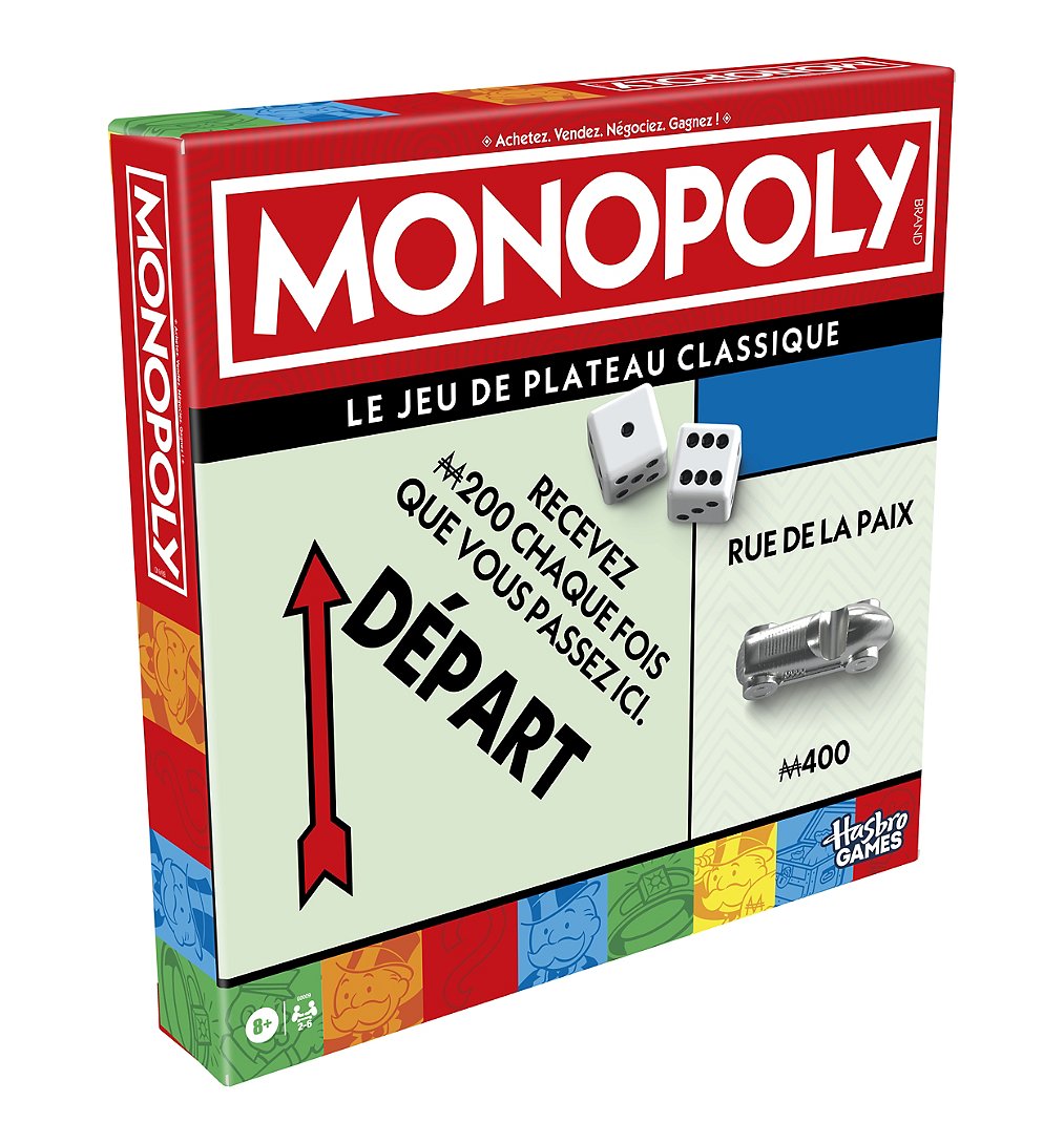 Le jeu de plateau le plus populaire au monde s'offre un nouveau look. Voyez grand. Vengez-vous. Mettez tout le monde en faillite ! Dés 8 ans. De 2 à 6 joueurs.