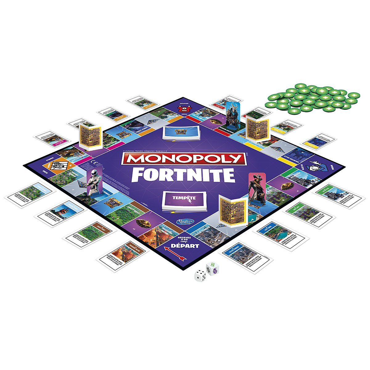 | Plus produit | JEU DE PLATEAU MONOPOLY : ÉDITION FORTNITE : Avis aux fans de Fortnite, cette édition du Monopoly s\'inspire du jeu vidéo populaire Fortnite. Dans ce jeu, ce n\'est pas ce qu\'on possède qui compte, mais combien de temps on peut survivre POUR LES FANS DE FORTNITE : Dans l\'édition Fortnite du Monopoly, les joueurs doivent s\'emparer des lieux, combattre leurs adversaires et tenter d\'éviter la tempête ; le dernier survivant gagne. Pour 2 à 7 joueurs PROPRIÉTÉS FORTNITE ET POINTS DE VIE : Les propriétés du Monopoly : édition Fortnite sont des lieux bien connus du jeu vidéo. De plus, au lieu de ramasser de l\'argent pour rester dans la partie, on récolte des jetons Point de vie COMBATTRE SES ADVERSAIRES : Dans cet amusant jeu conçu pour les fans de Monopoly et de Fortnite, on peut combattre ses adversaires à l\'aide du dé d\'action et des objets du coffre au trésor. À partir de 13 ans ON CHOISIT UNE TENUE : Le jeu inclut 27 portraits avec tenue Fortnite et socle. Les joueurs peuvent donc choisir leur personnage préféré pour jouer |