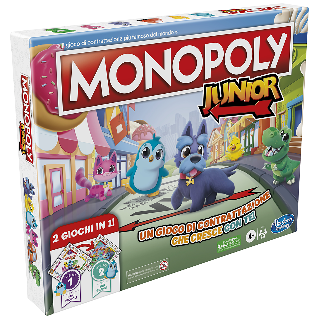 Libellé Monopoly Junior, plateau de jeu réversible, 2 jeux en 1, jeu Monopoly pour jeunes enfants, jeux de plateau pour enfants, jeux junior