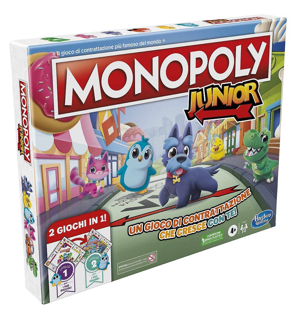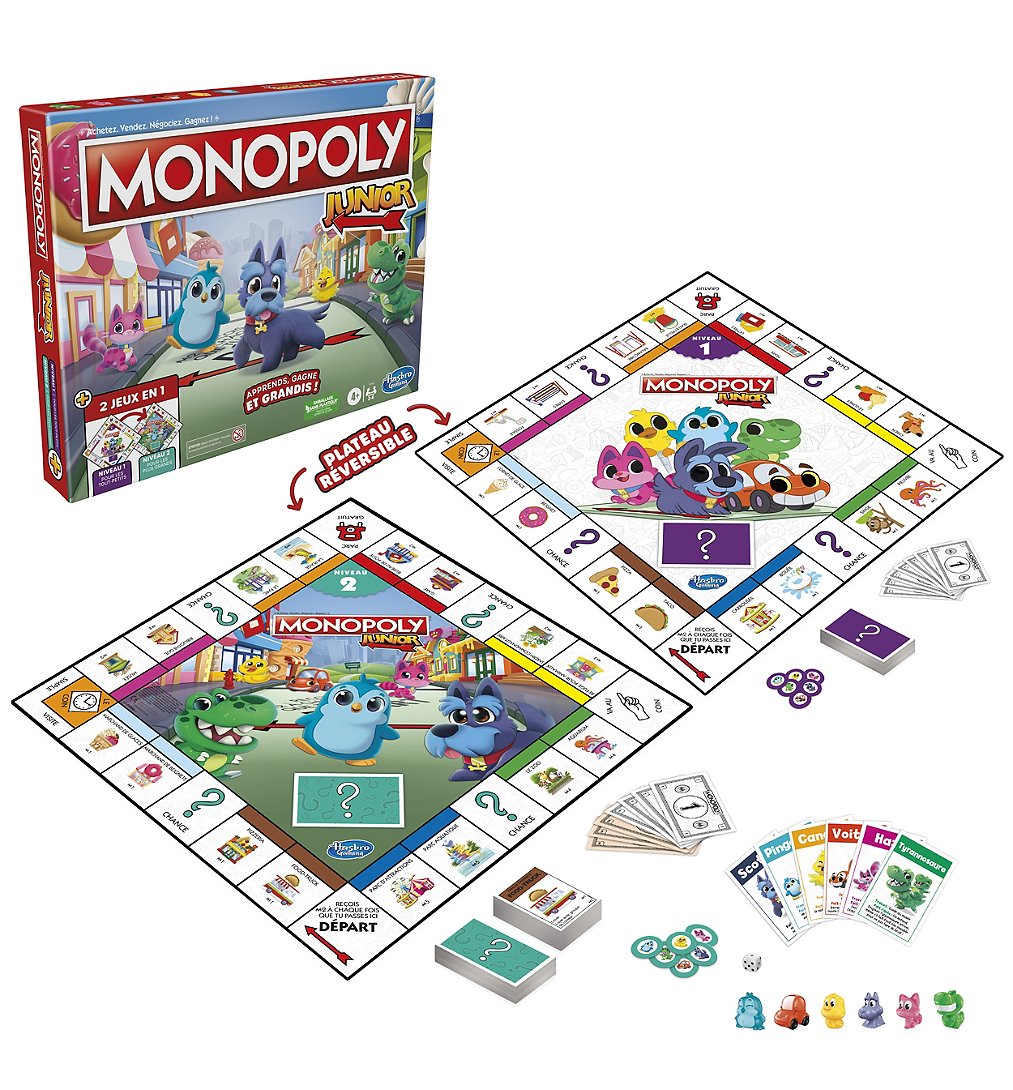 Libellé Monopoly Junior, plateau de jeu réversible, 2 jeux en 1, jeu Monopoly pour jeunes enfants, jeux de plateau pour enfants, jeux junior