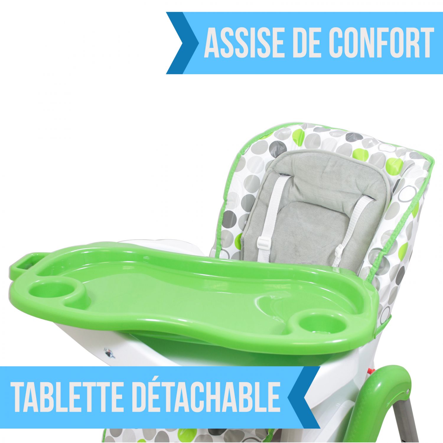 | Libellé | Monsieur Bébé - Chaise haute bébé, enfant pliable, réglable hauteur, dossier et tablette - Ptit Pois |