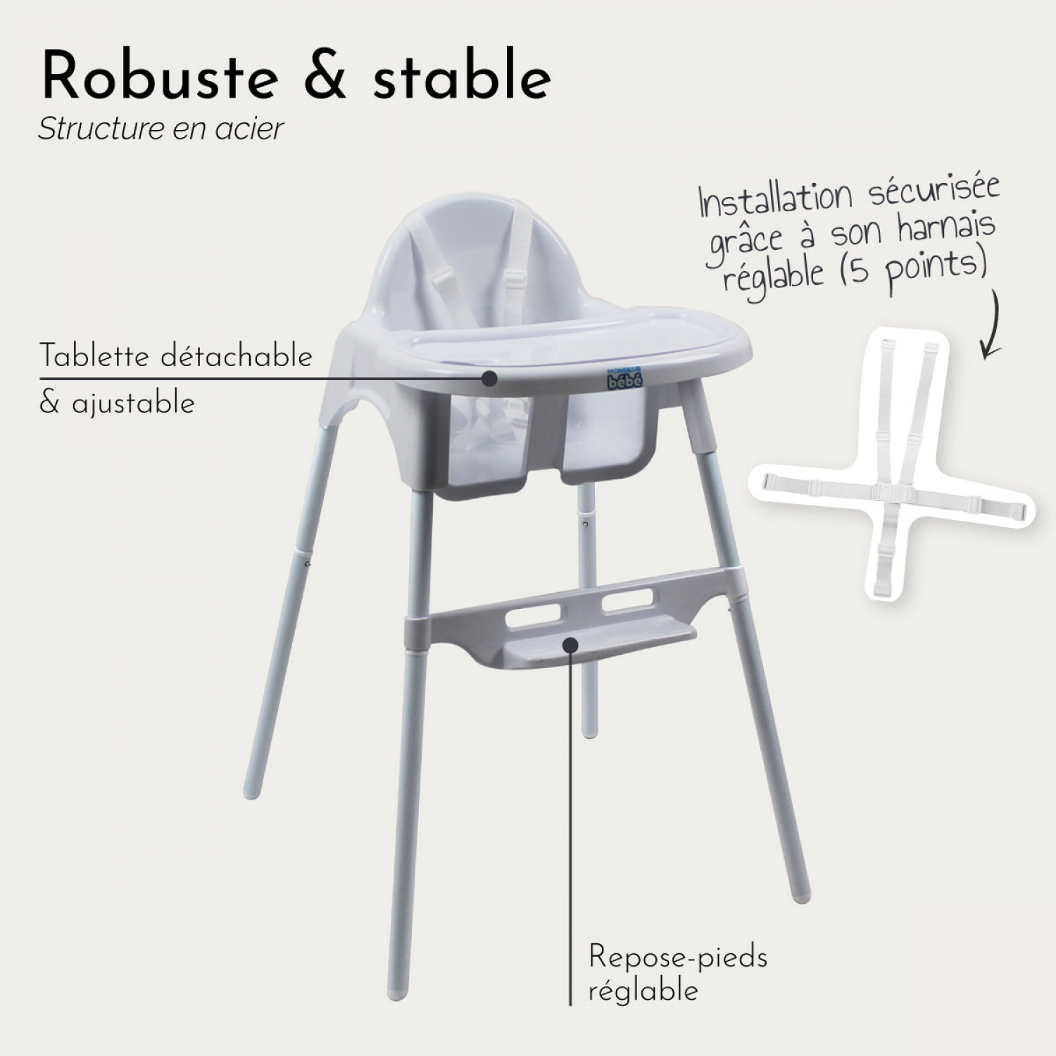 | Libellé | Monsieur Bébé - Chaise haute bébé réglable hauteur et tablette - Délice - Blanc |