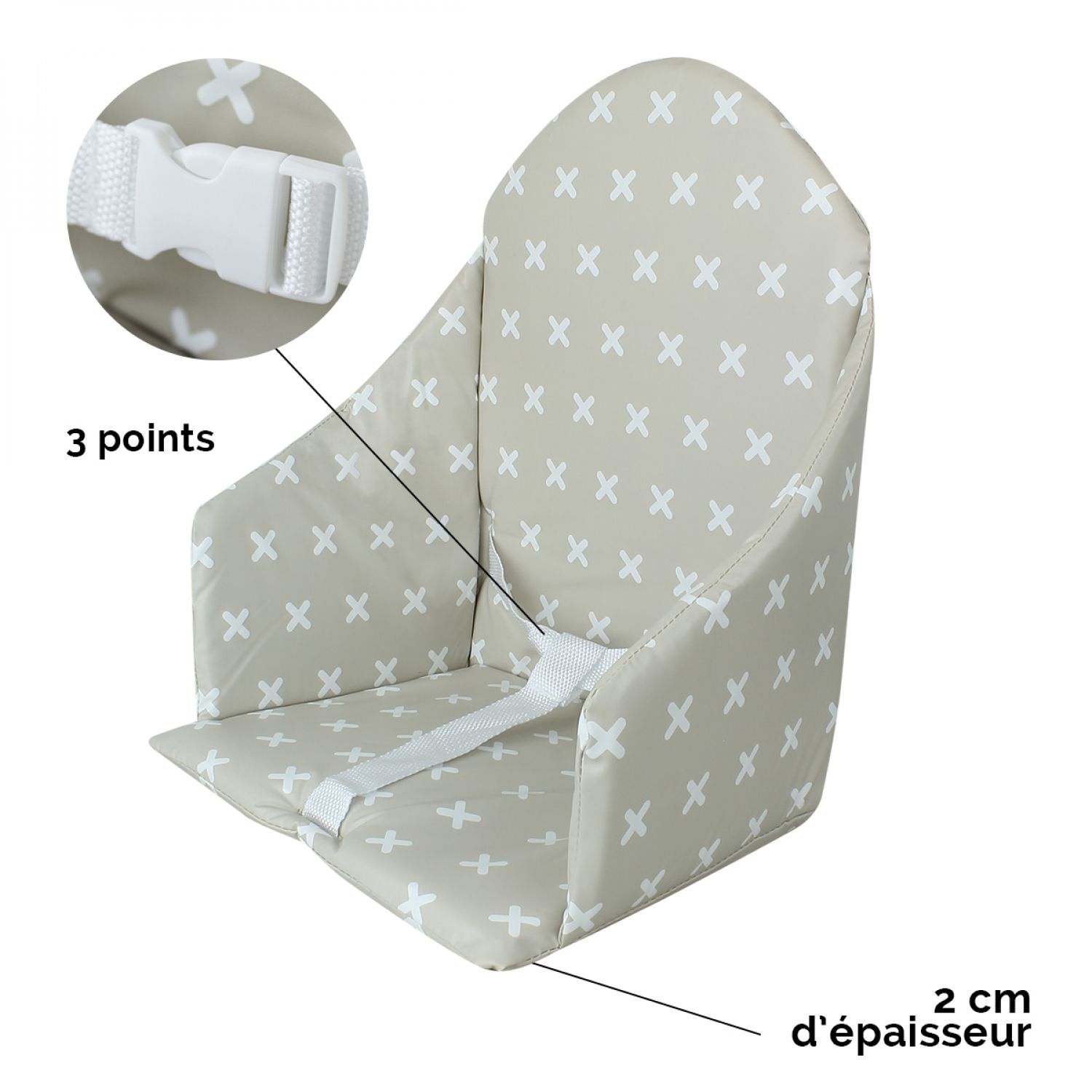 Monsieur Bébé - Coussin d'assise universel Miam avec harnais pour chaise haute bébé - Beige croix