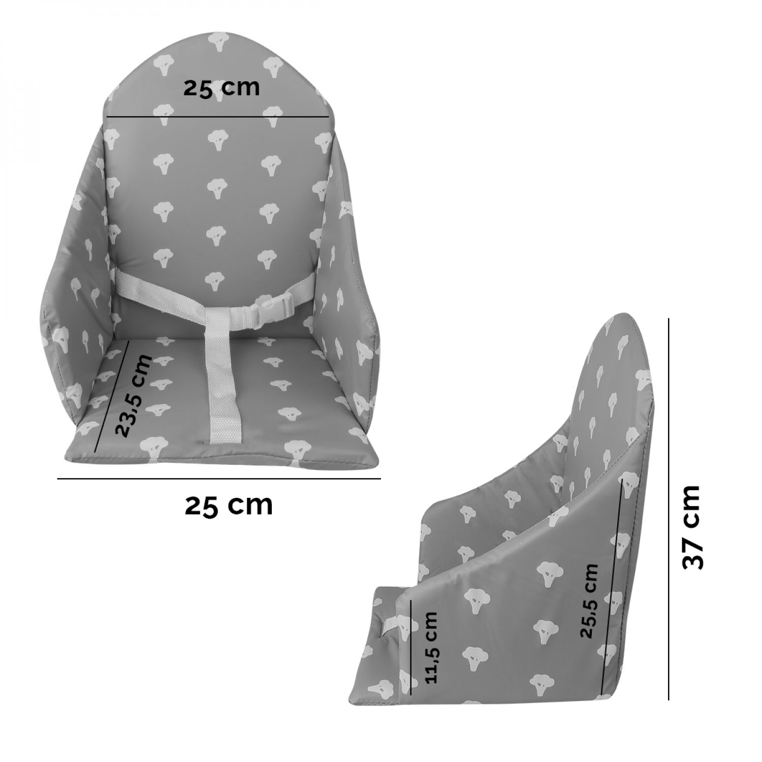 | Libellé | Monsieur Bébé - Coussin d'assise universel Miam avec harnais pour chaise haute bébé - Gris foncé brocolis |