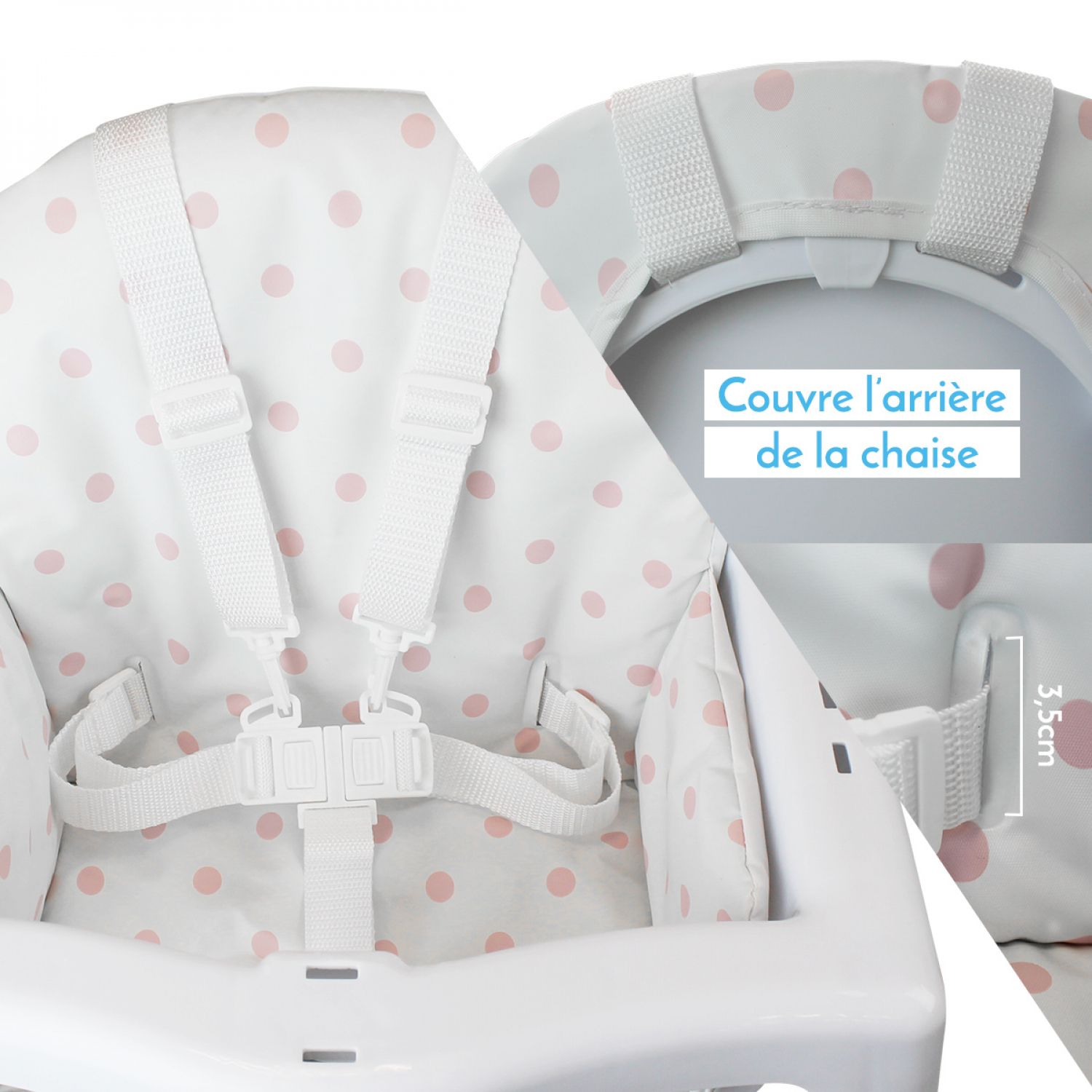 Libellé Monsieur Bébé - Housse d'assise pour chaise haute bébé enfant gamme Délice - Pois roses
