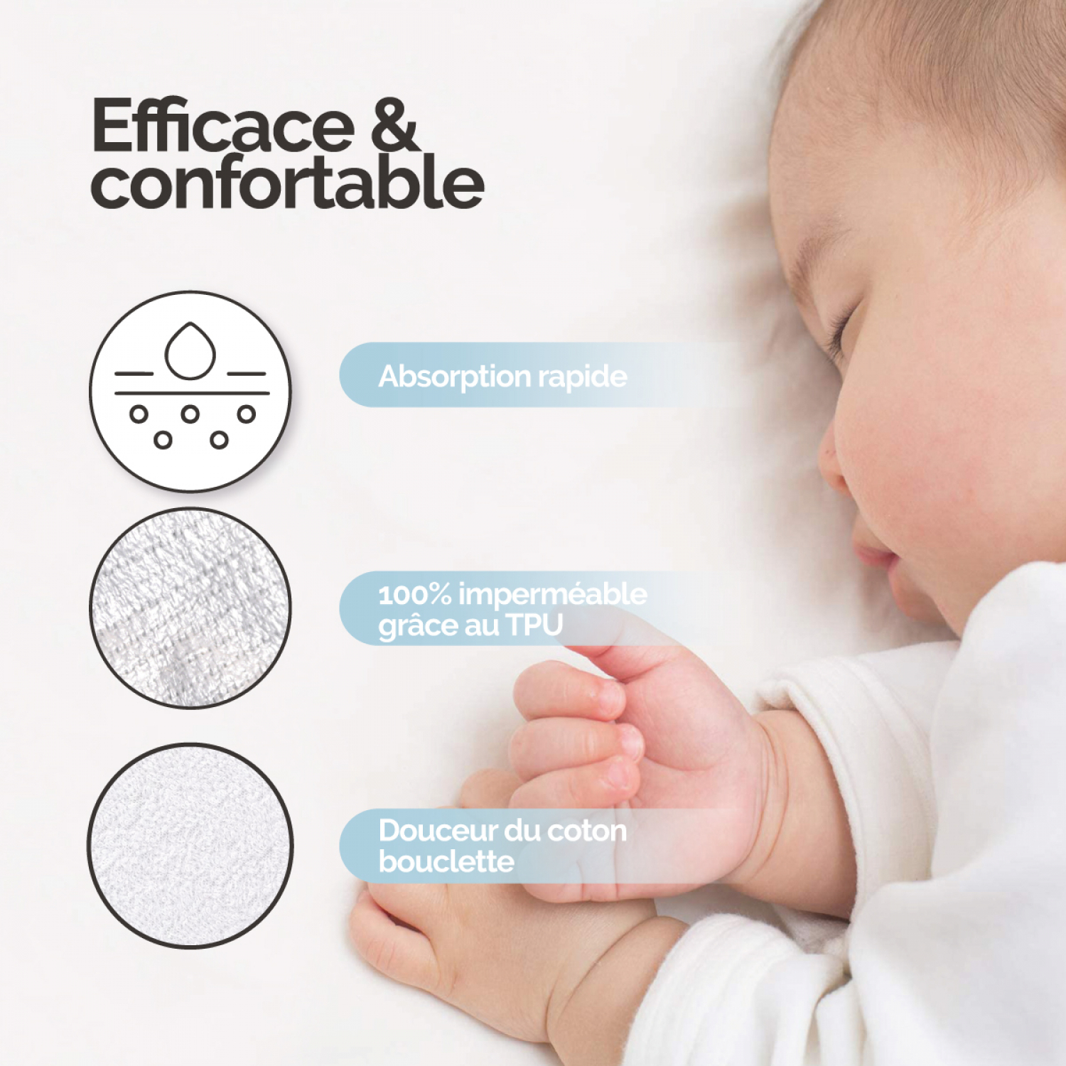 Libellé Monsieur Bébé - Lot de 2 alèses, protèges matelas imperméables et respirants - Coton et TPU - 40 x 80 cm - Blanc