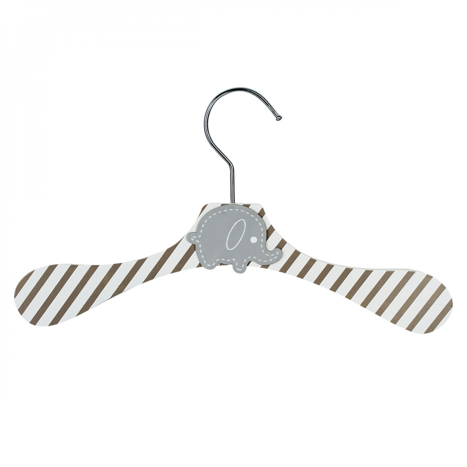 | Libellé | Monsieur Bébé - Lot de 20 cintres bois 28 cm bébé, enfant avec crochet pivotant - Cintre rayé blanc et marron et éléphant gris |