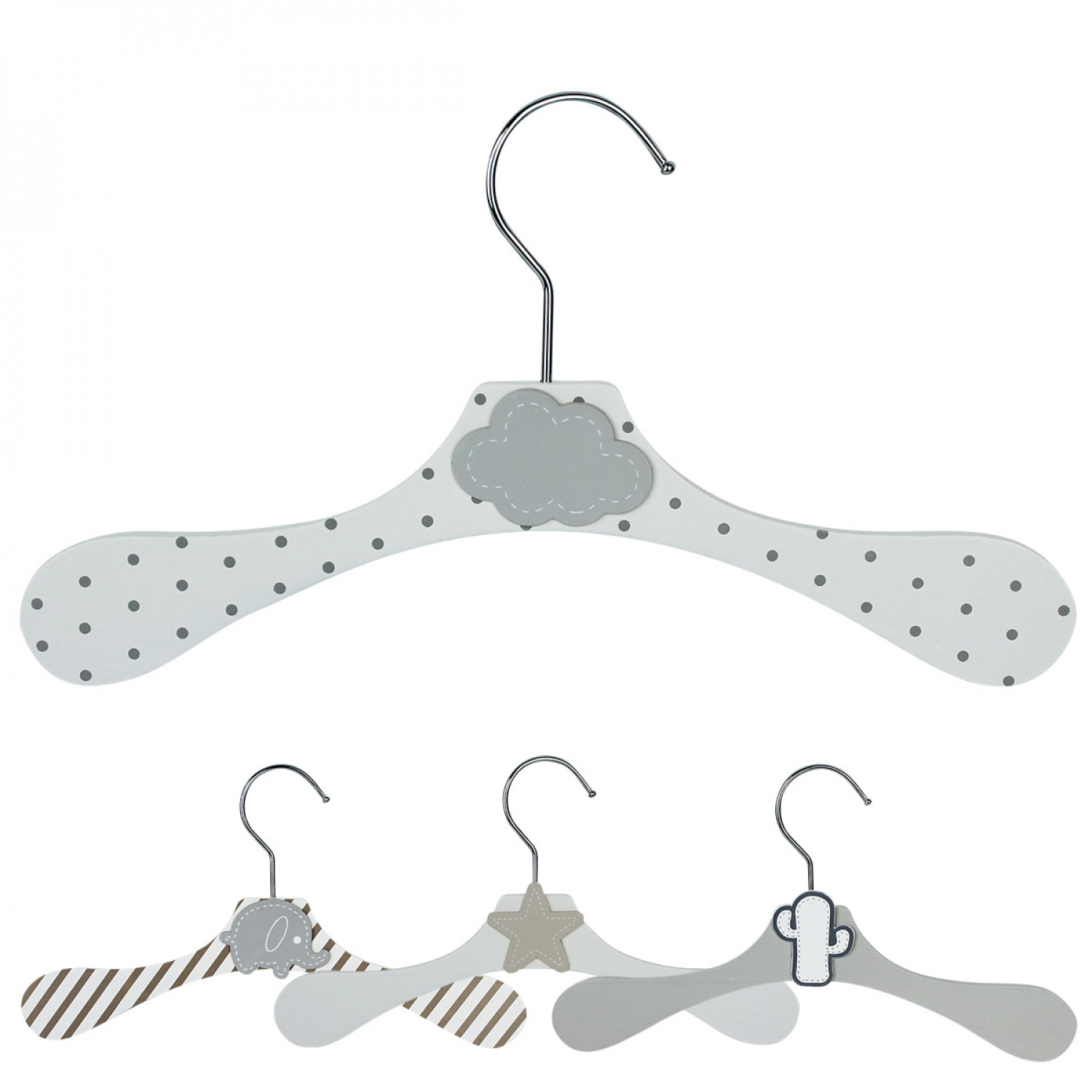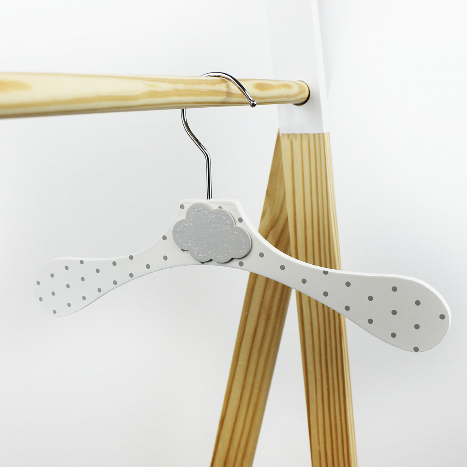 | Libellé | Monsieur Bébé - Lot de 50 cintres bois 28 cm bébé, enfant avec crochet pivotant - Cintre blanc à pois gris et nuage gris |
