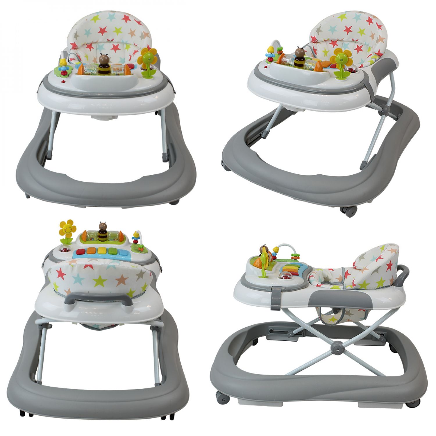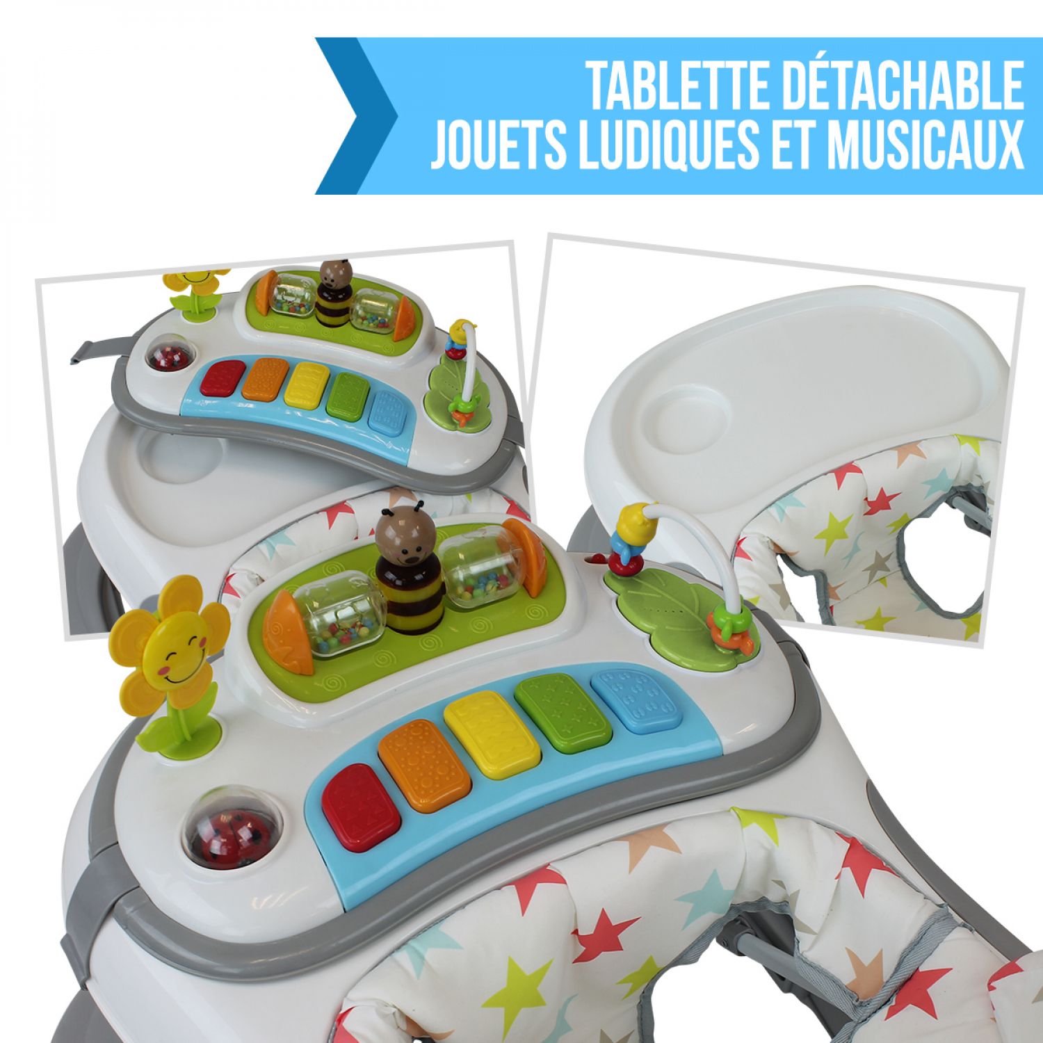 Monsieur Bébé - Trotteur bébé évolutif musical pliable réglable en hauteur - Gris