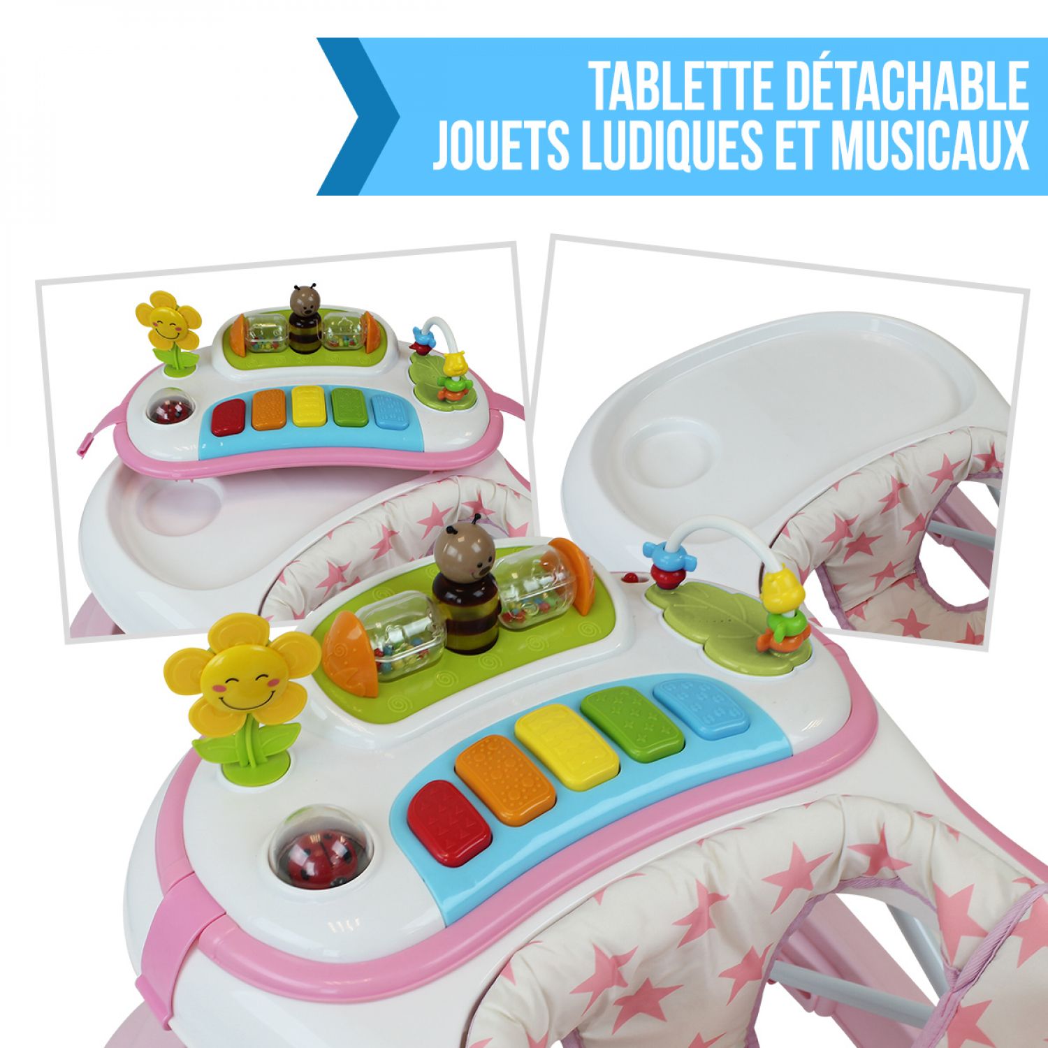 Monsieur Bébé - Trotteur bébé évolutif musical pliable réglable en hauteur - Rose