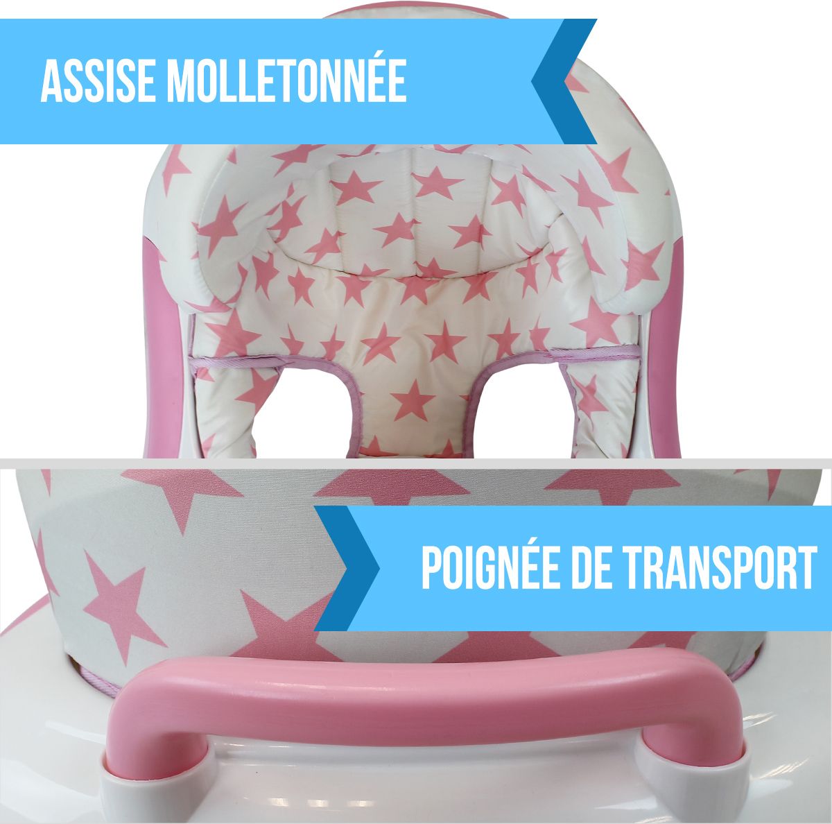 | Libellé | Monsieur Bébé - Trotteur bébé évolutif musical pliable réglable en hauteur - Rose |