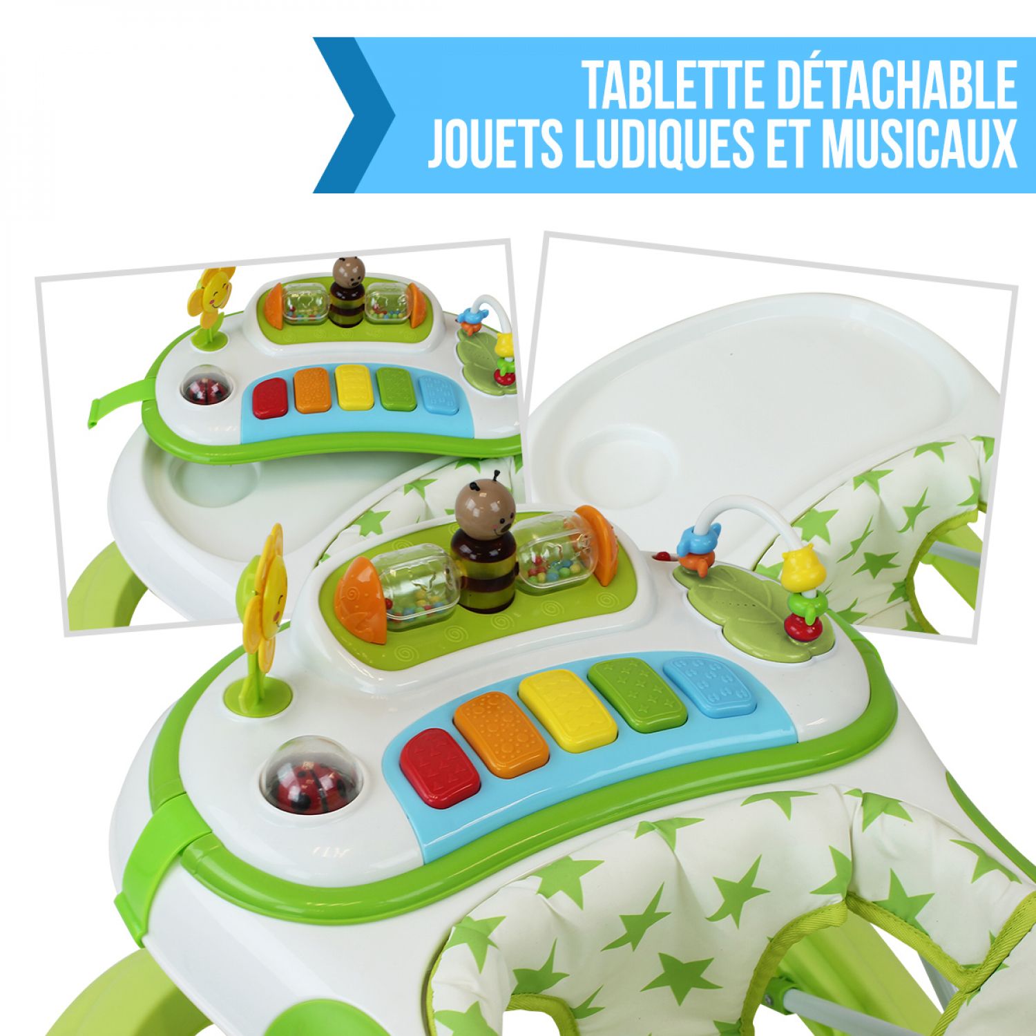 Monsieur Bébé - Trotteur bébé évolutif musical pliable réglable en hauteur - Vert